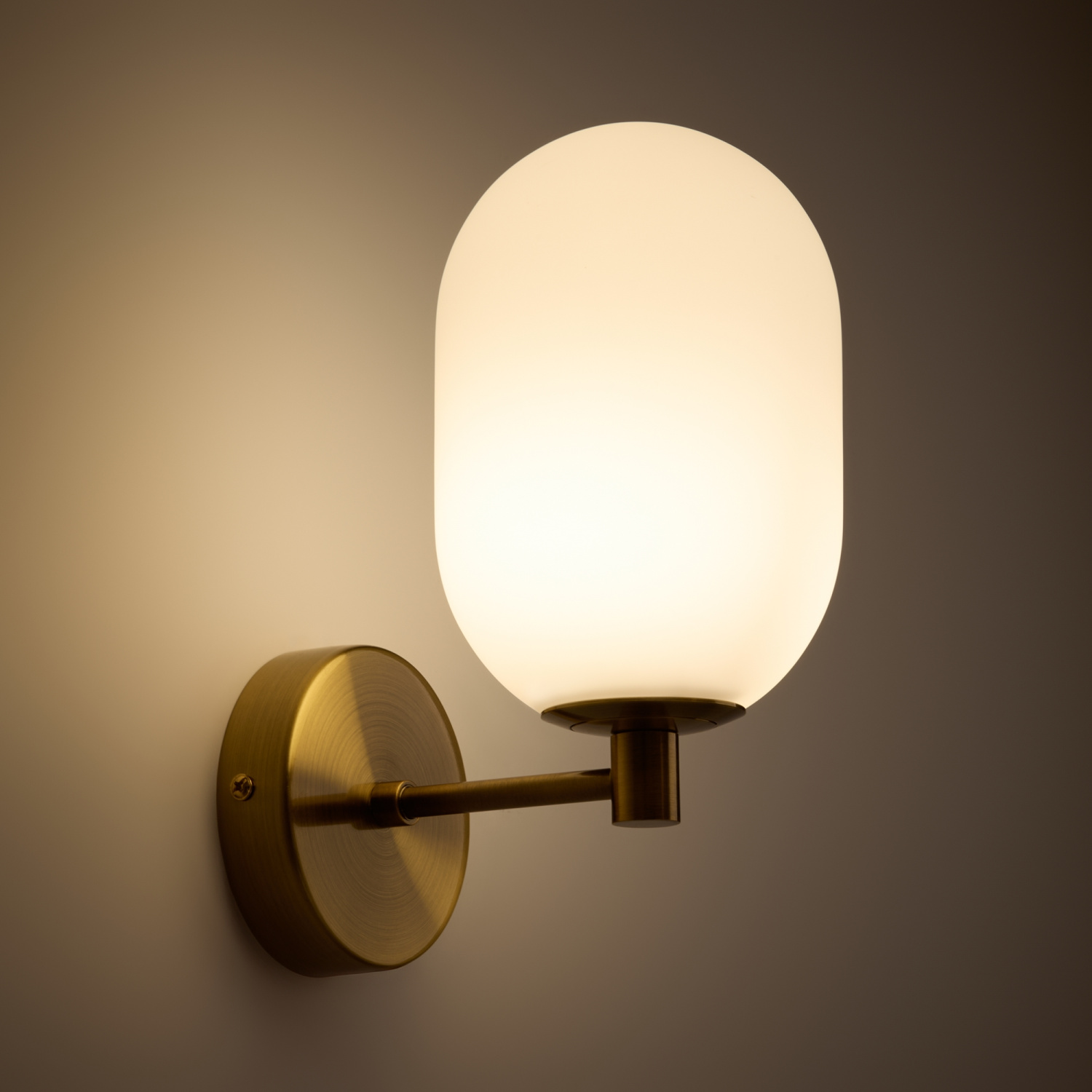 Арматура из металла цвета латуни. Плафоны овальной формы из белого матового стекла. Форма плафонов дает рассеянный свет, максимальная пропускная способность. Источник света лампа. Цоколь G9. Широкая линейка позволяет организовать комплексное освещение в едином стиле.