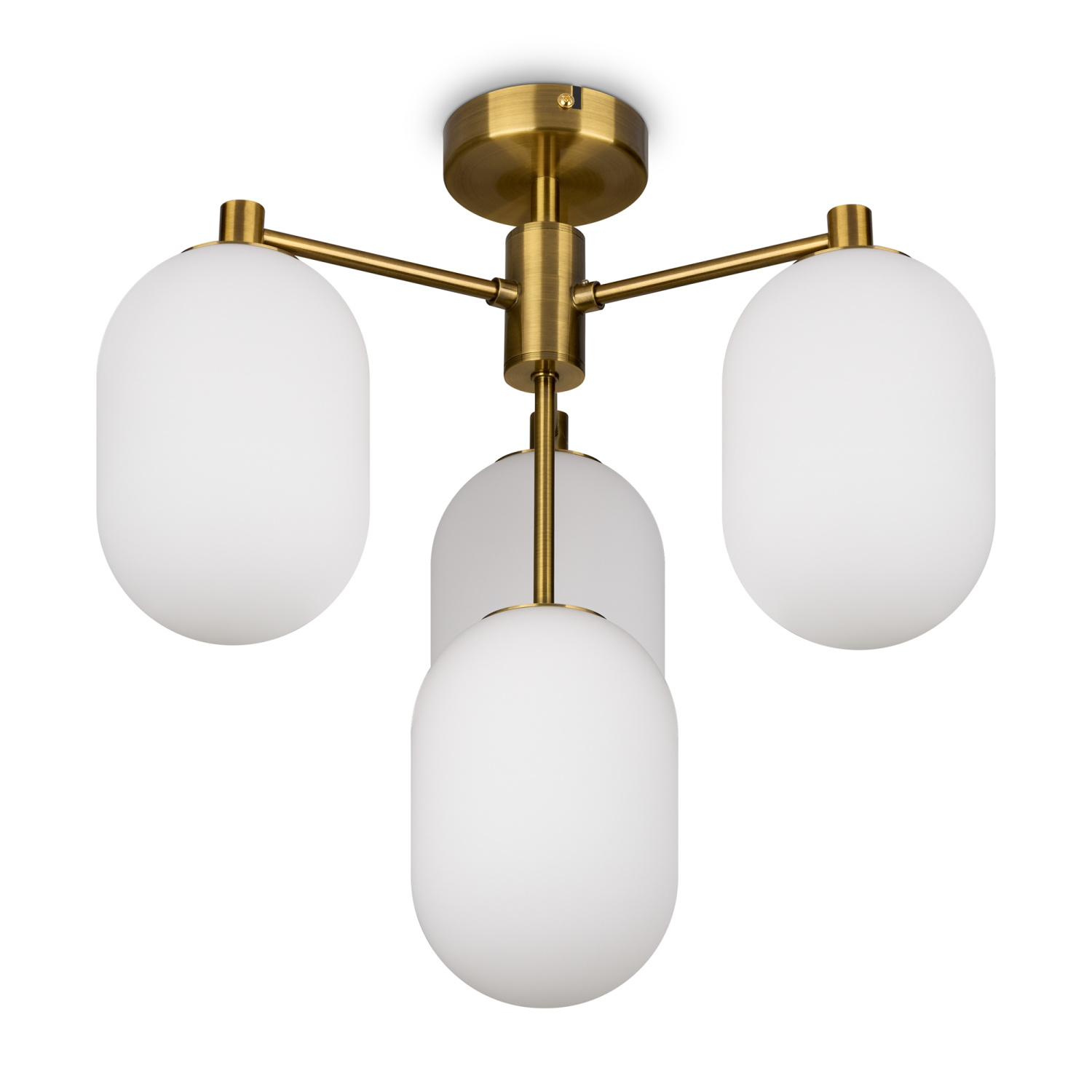 Арматура из металла цвета латуни. Плафоны овальной формы из белого матового стекла. Форма плафонов дает рассеянный свет, максимальная пропускная способность. Источник света лампа. Цоколь G9. Широкая линейка позволяет организовать комплексное освещение в едином стиле.