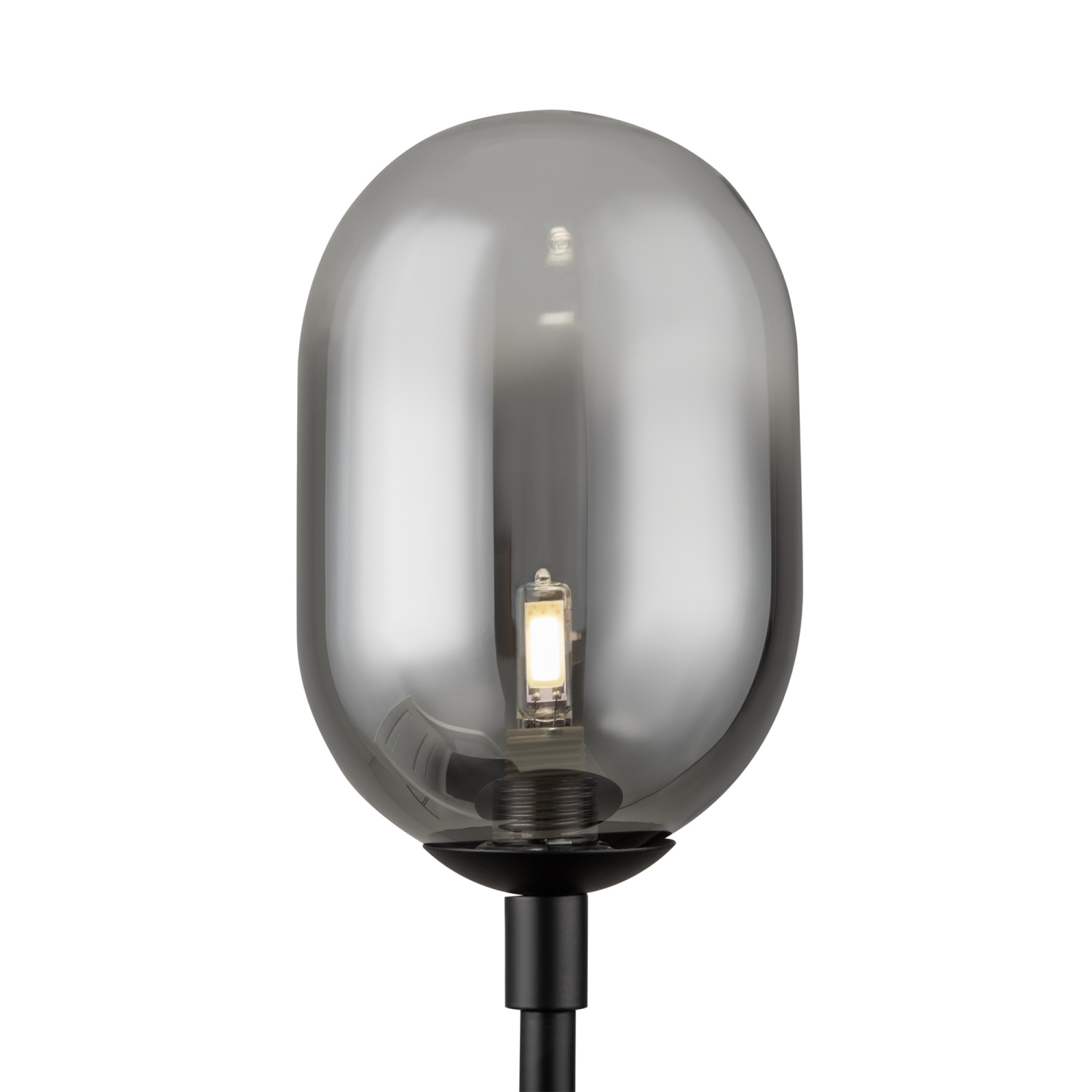 Арматура из металла матового черного цвета. Плафон из стекла с окрасом растяжка. Цвет дымчатый. Модификация — настенные, потолочные и настольные светильники. Источник света — лампа. Цоколь G9.