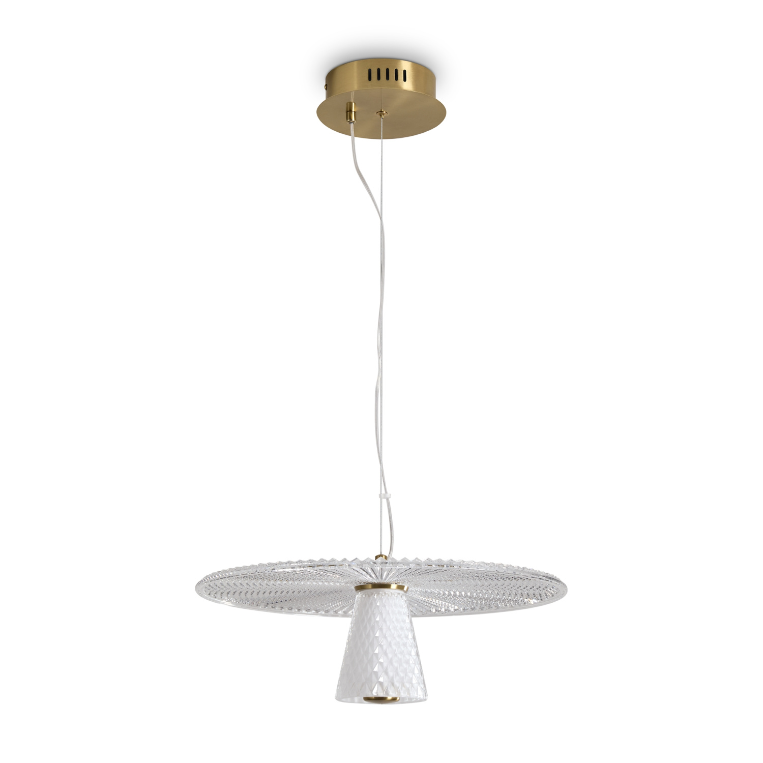 Серия Grail представлена подвесными светильниками с рельефным стеклом, имитирующим хрустальные грани в прозрачном и матовом покрытии. Арматура - металл латунного цвета. Источник света спрятан внутри рельефного стаканчика с узором «ромбик». Два варианта подвесов: с одним ярусом и с двумя, прекрасно сочетаются и придают изюминку даже самому минималистичному интерьеру. Плафоны выполнены из прозрачного акрила, имитирующего рельефное стекло. Оснащены LED источником света 3000K. Сочетают классическую эстетику хрустальных ваз с современными технологиями, создавая элегантное и эффективное освещение.