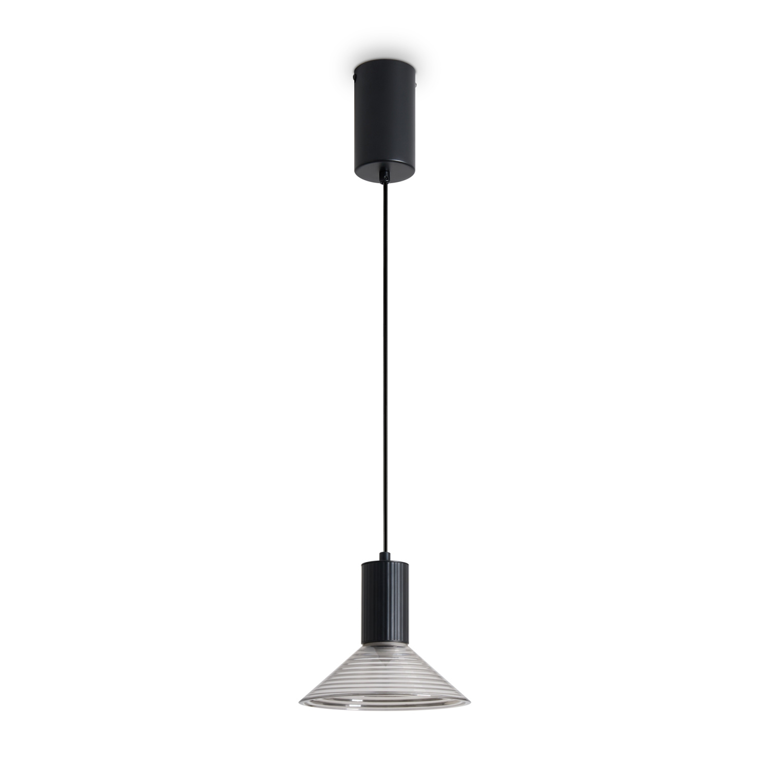 Гальванизированные рельефные плафоны в минималистичном стиле, выполнены из стекла с дымчатым эффектом. Арматура — граненый металл черного цвета. Оснащены LED источниками света мощностью 6 Вт с цветовой температурой 2800K, создающими теплое, уютное освещение. Серия включает бра и одинарный подвесной светильник. Универсальны для современных интерьеров, стремящихся к простоте и функциональности.