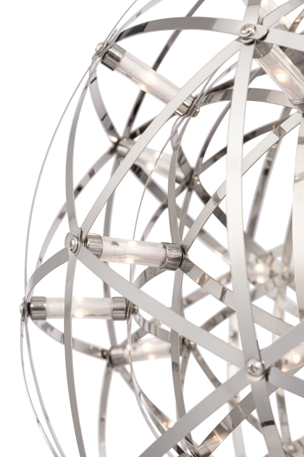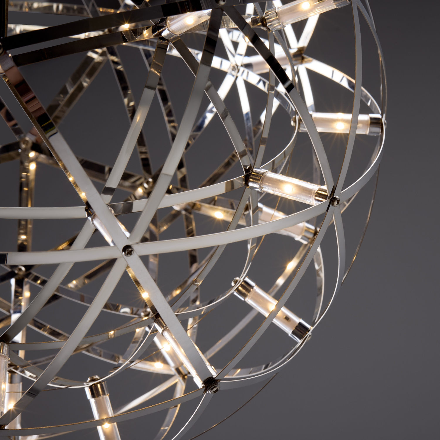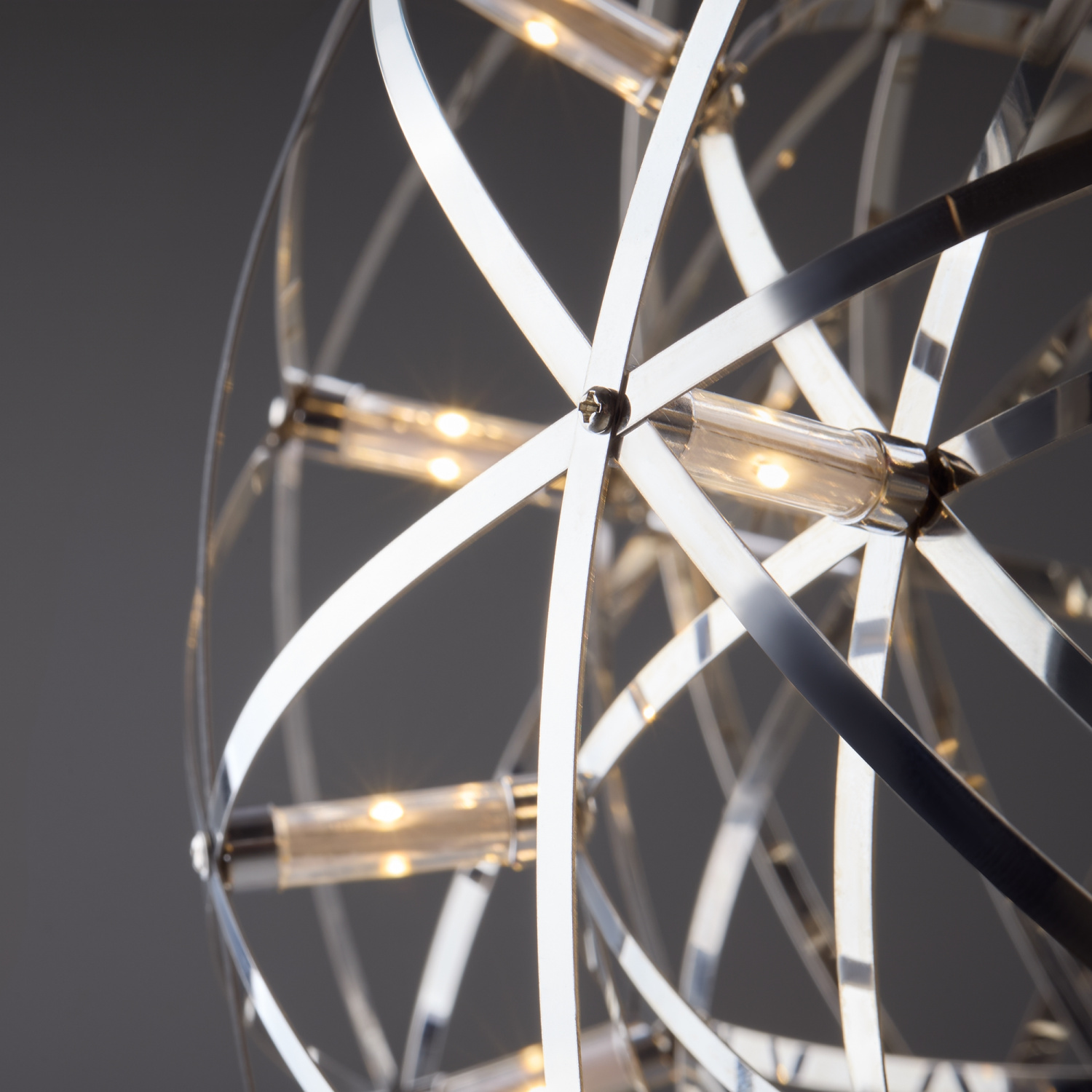 Серия Amber представляет воздушные светильники-сферы, выполненные в трендовом стиле хай-тек. Хромированная металлическая арматура и плафон, сотканный из переплетающихся лент, создают запоминающийся современный образ. Встроенные светодиоды экономят электроэнергию и красиво подсвечивают сферу. В выключенном состоянии светильник выглядит как абстрактное произведение искусства и является полноправной частью декоративного ансамбля интерьера. Серию составляют подвесы различного диаметра – их можно использовать по отдельности, а можно комбинировать в группы. Для обстановки в стиле хай-тек, минимализм, лофт, помещений кафе и ресторанов светильник станет идеальным решением.