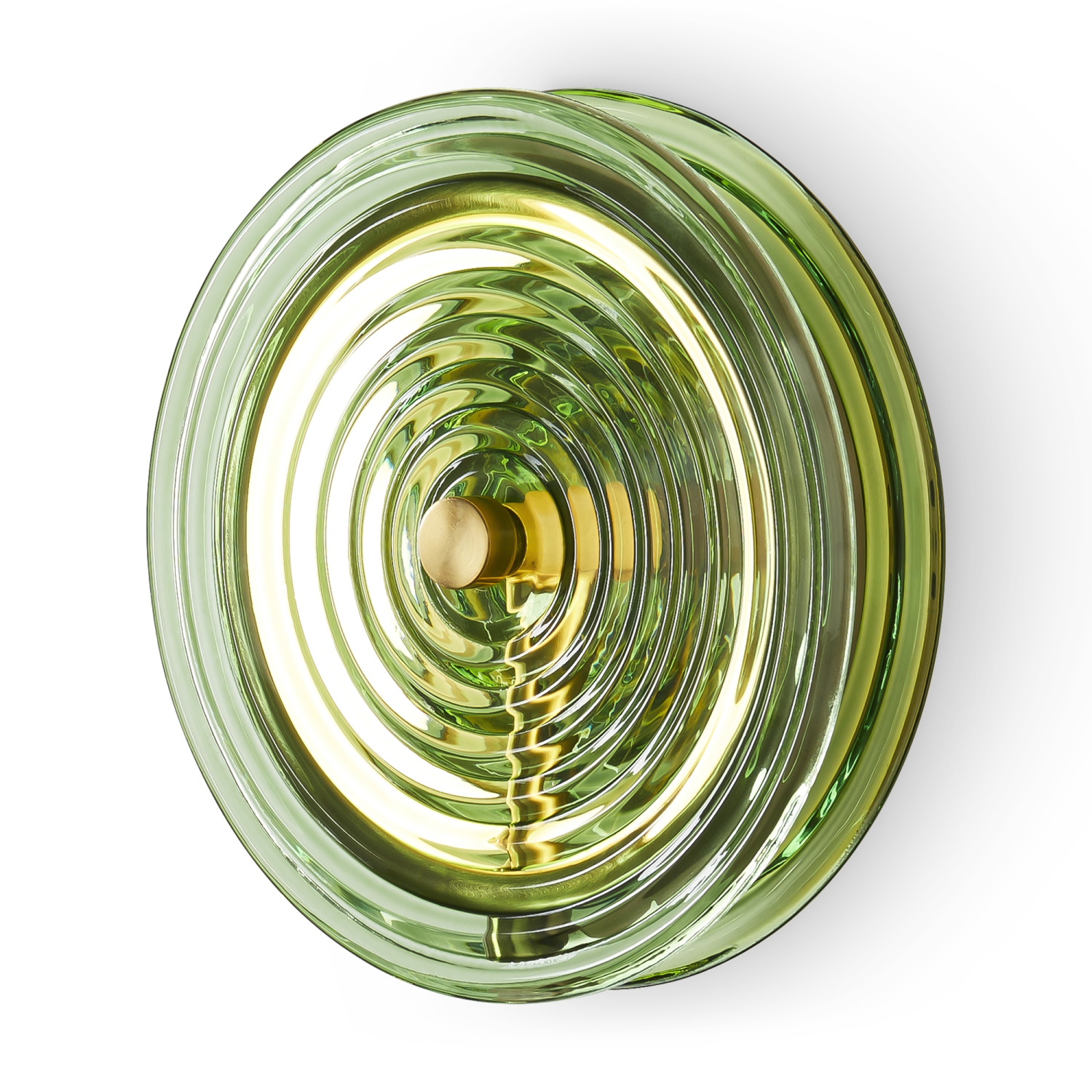 Арматура - металл. Цвет арматуры латунь. Плафоны из стекла в форме леденцов выполнены в четырех цветах: серый, зеленый, прозрачный и желто-оранжевый. Широкий спектр типов светильников: торшеры, настенные бра и подвесы. LED источник света. Цветовая температура 3000К.