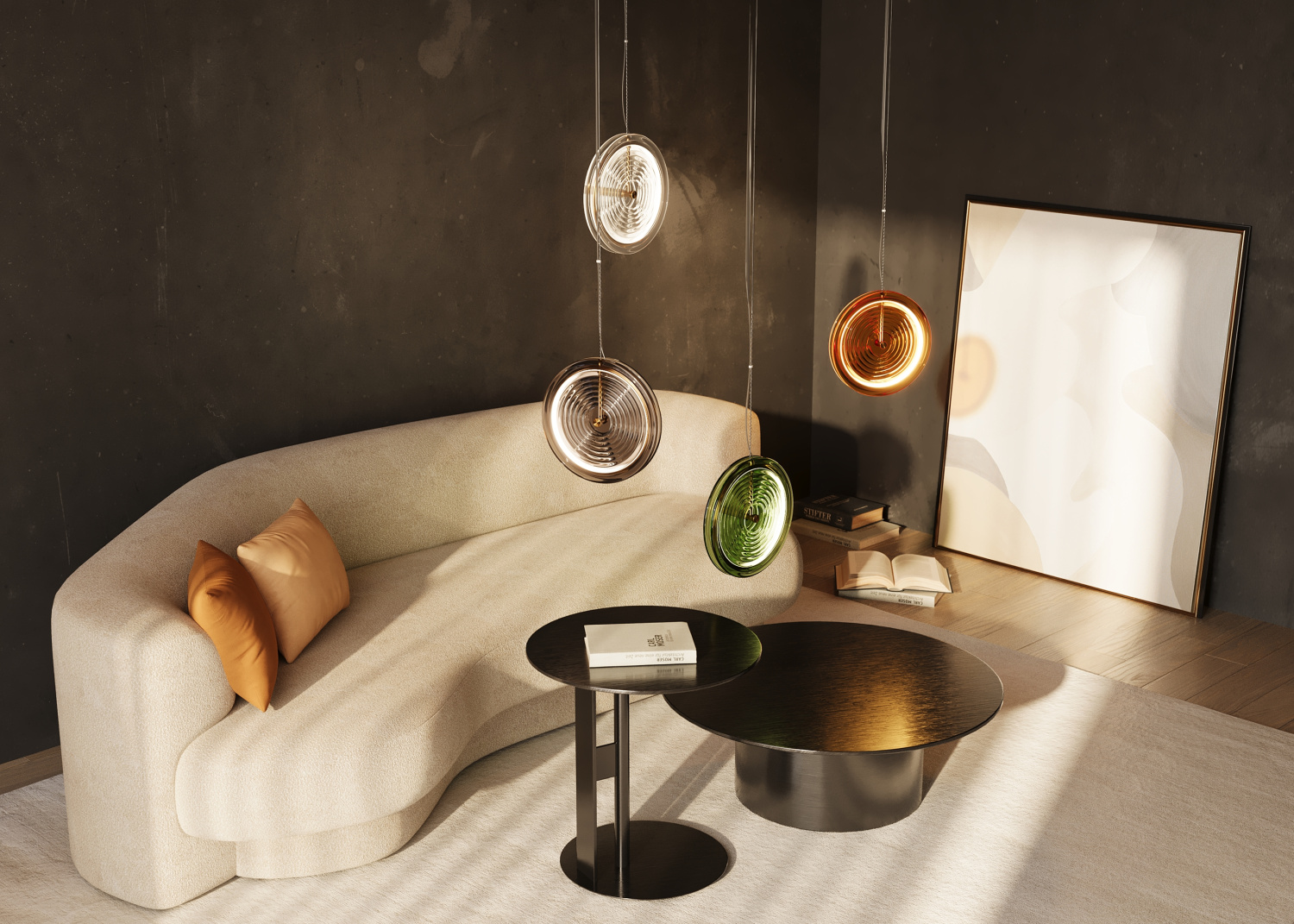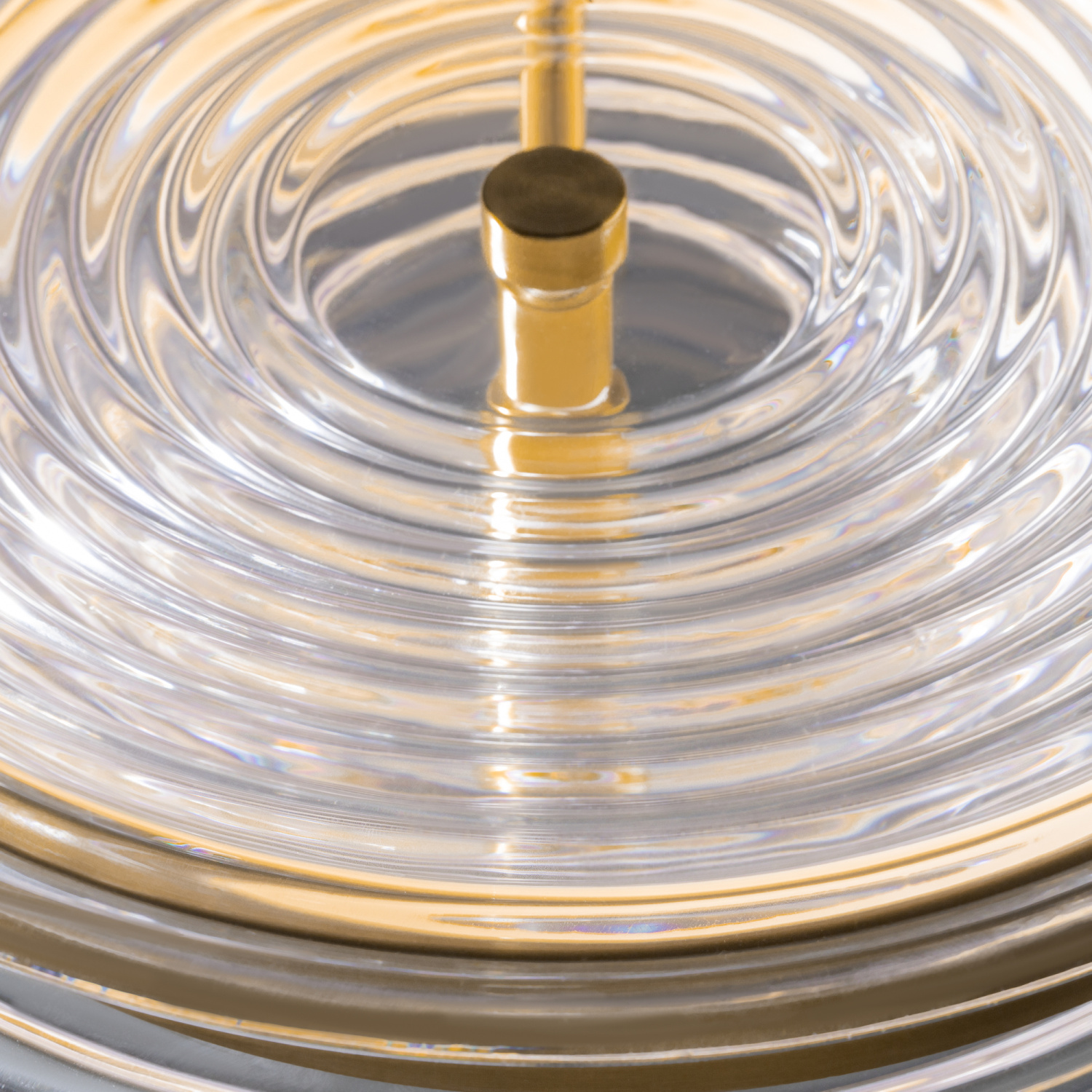 Арматура - металл. Цвет арматуры латунь. Плафоны из стекла в форме леденцов выполнены в четырех цветах: серый, зеленый, прозрачный и желто-оранжевый. Широкий спектр типов светильников: торшеры, настенные бра и подвесы. LED источник света. Цветовая температура 3000К.