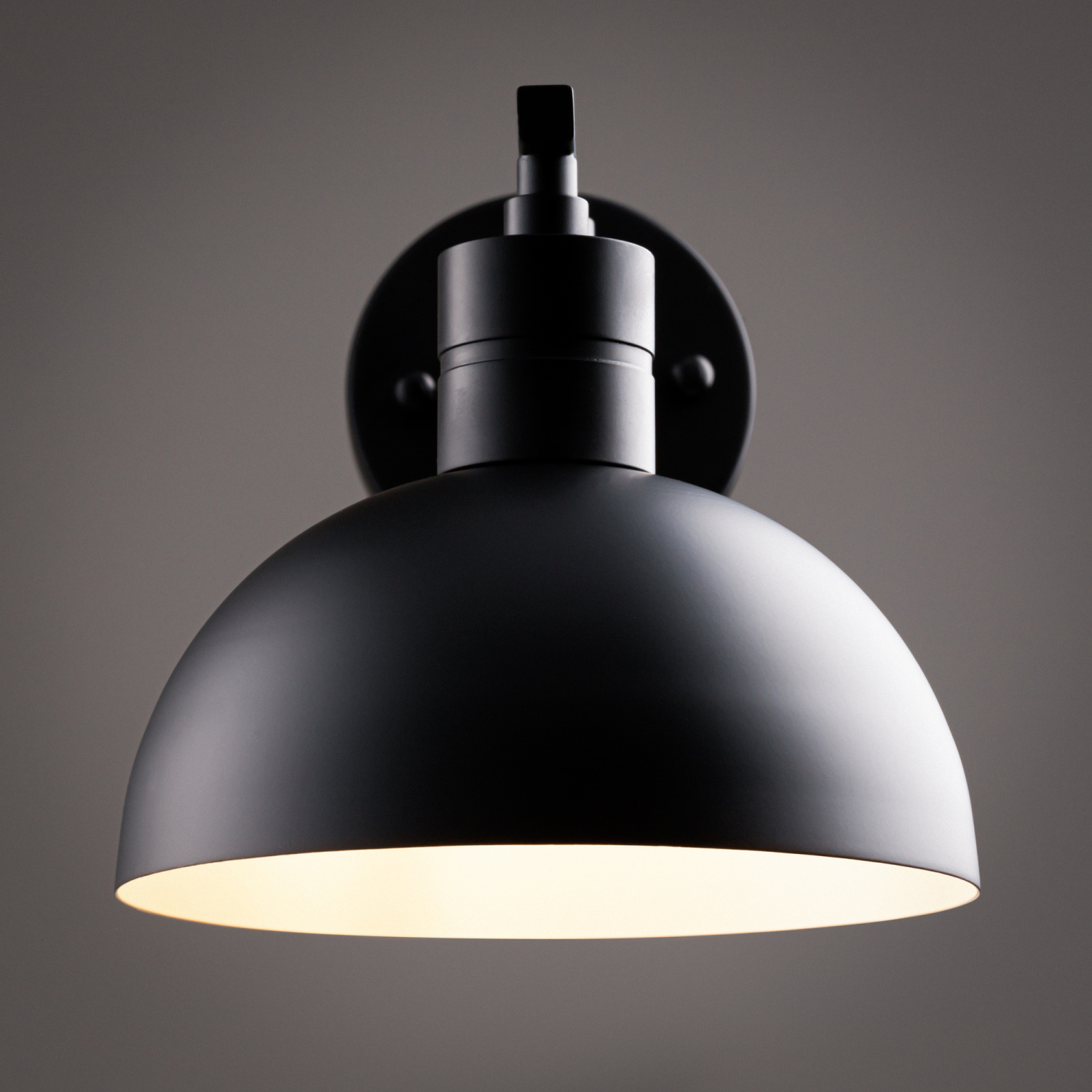 Материал арматуры — металл, цвет — черный. Плафон в форме полушара. Внутри выкрашен в белый цвет. Создает мягкий рассеянный свет. Поворотный механизм в конструкции светильника позволяет направлять плафон - регулировать направление света. Изысканный силуэт светильника идеально сочетается с сериями Enzo и Eleon. Источник света — лампа с цоколем E27.