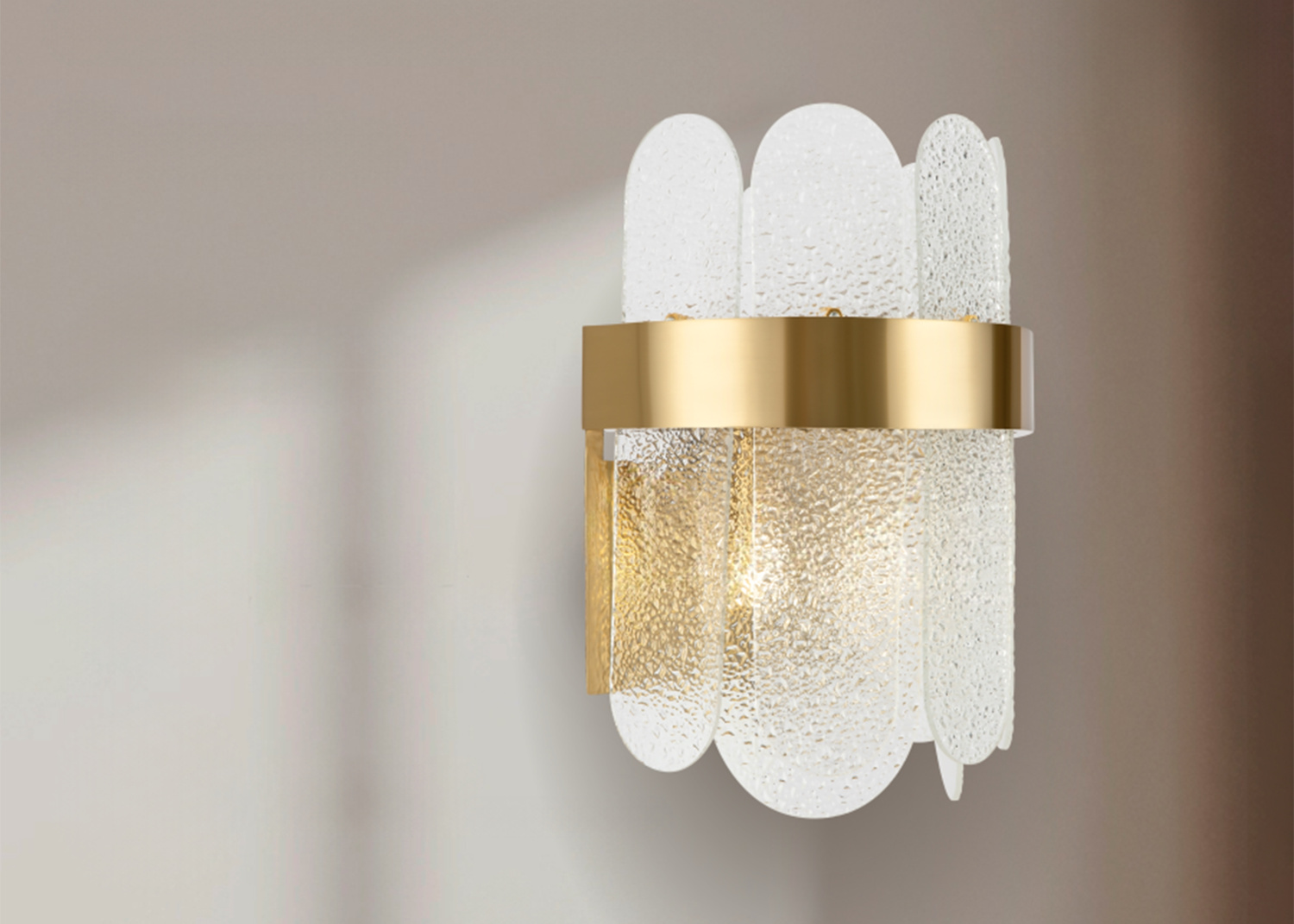 Арматура из металла. Цвет – латунь и никель. Стеклянный декор в двух вариантах: фактурный с эффектом «замороженного стекла» и глянцевый дымчатого оттенка. Источник света – лампа G9.