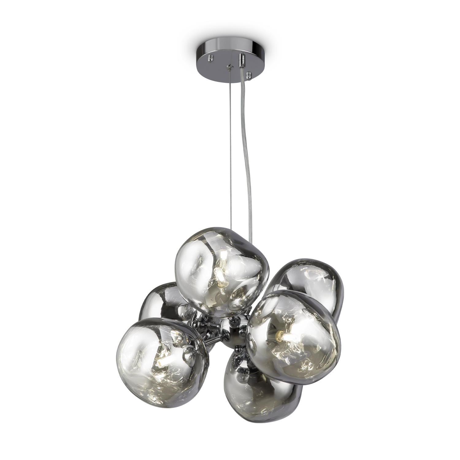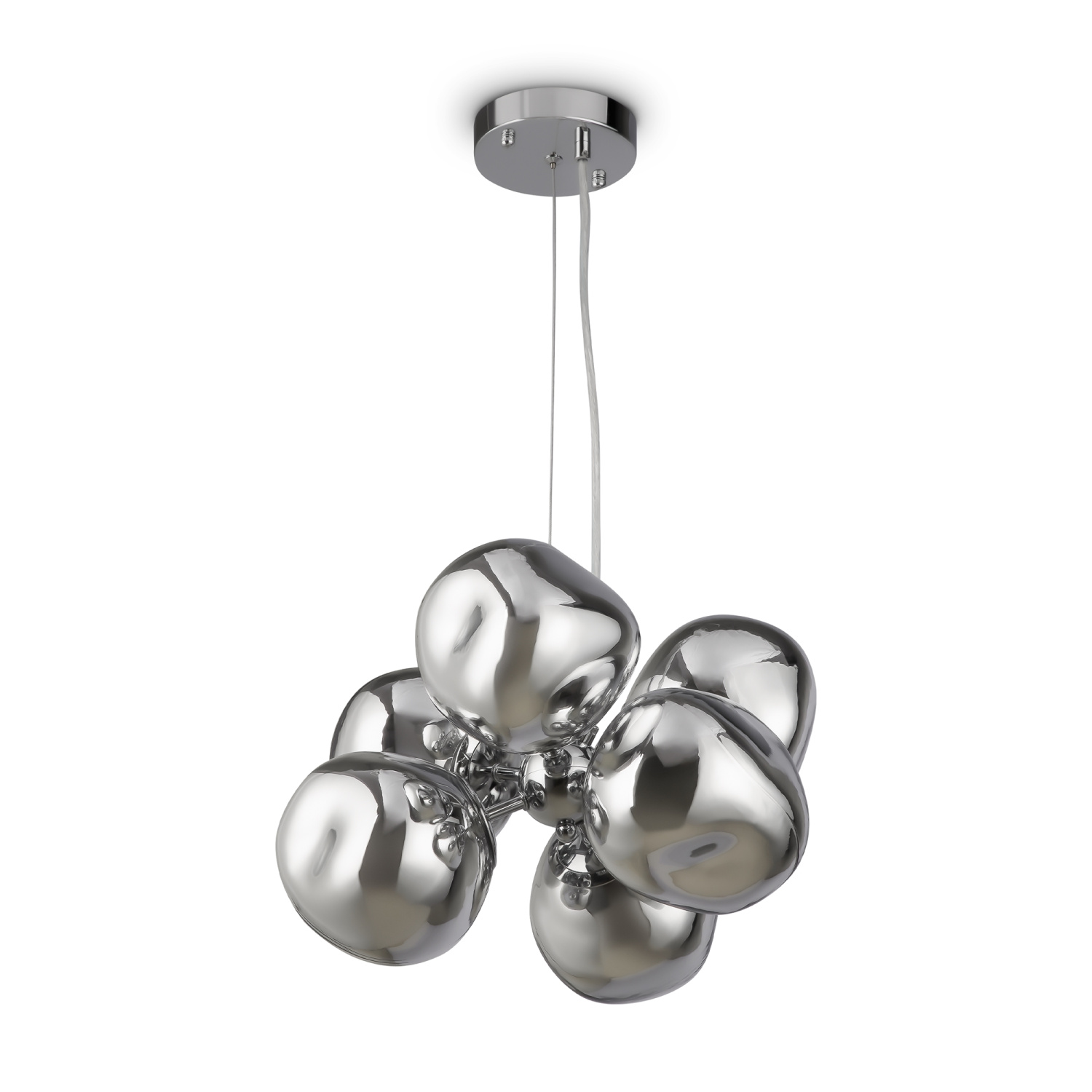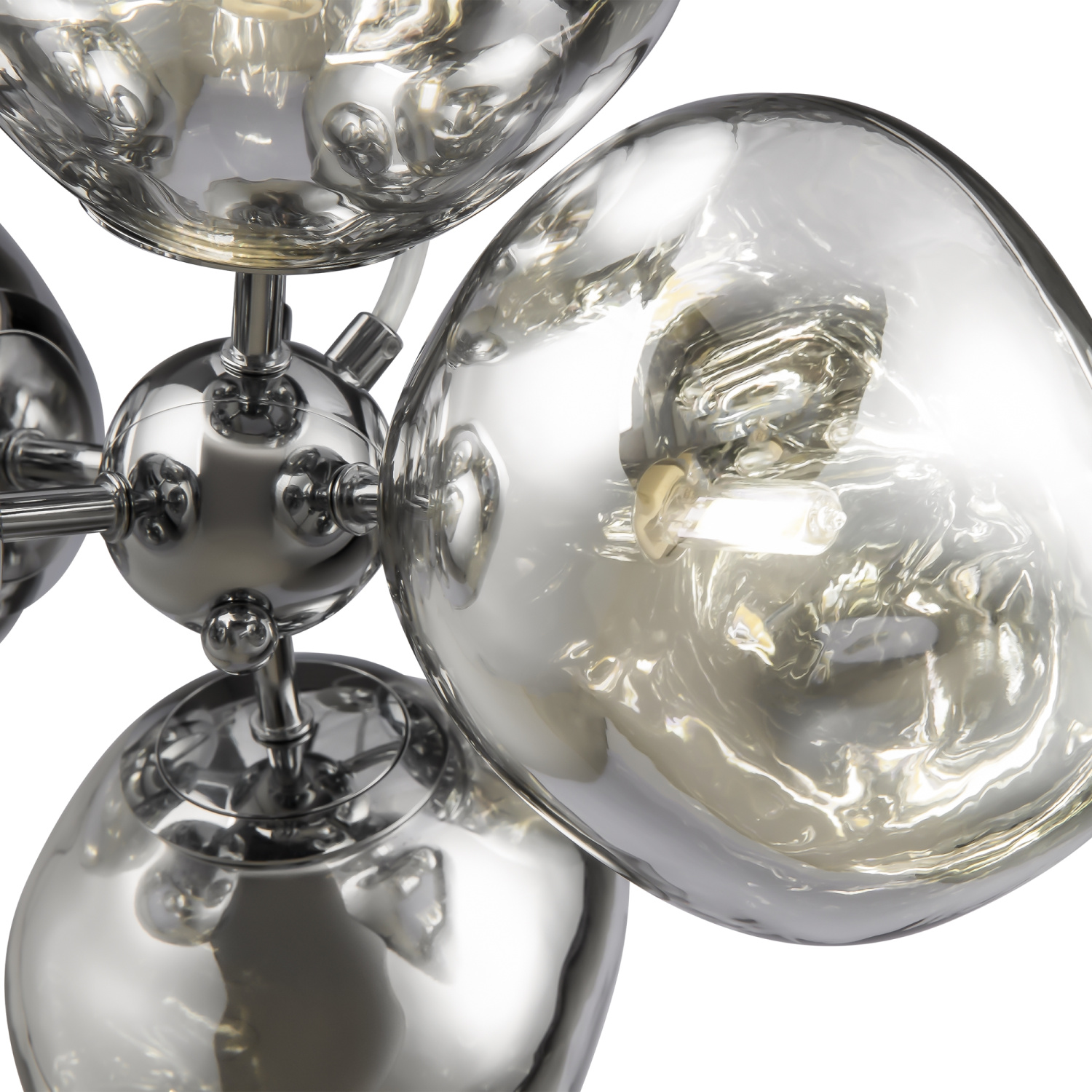 Арматура — металл, цвет — хром. Шарообразные плафоны с зеркальным эффектом и переливами. Материал - стекло с серебристым напылением. Источник света — лампа с цоколем — E27.