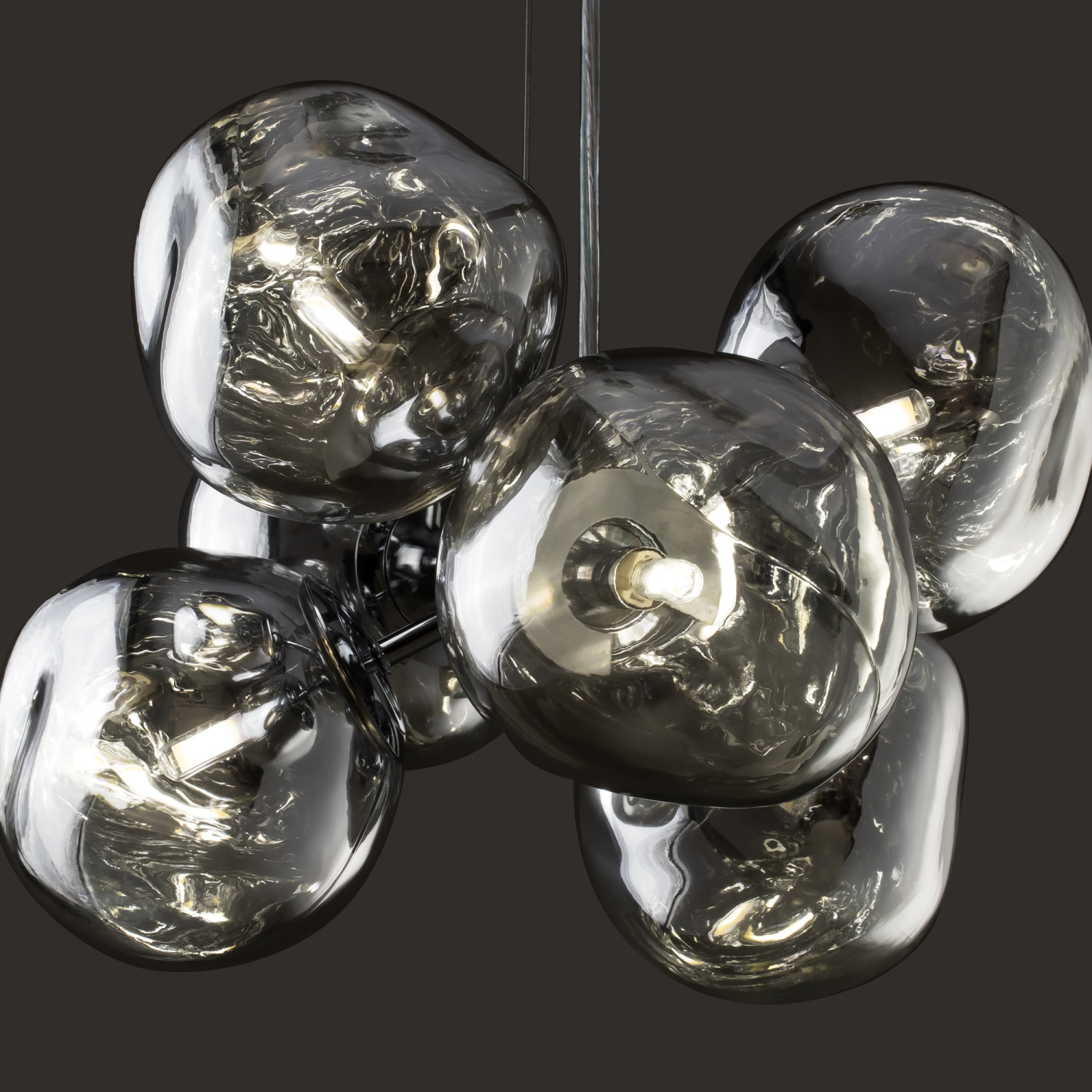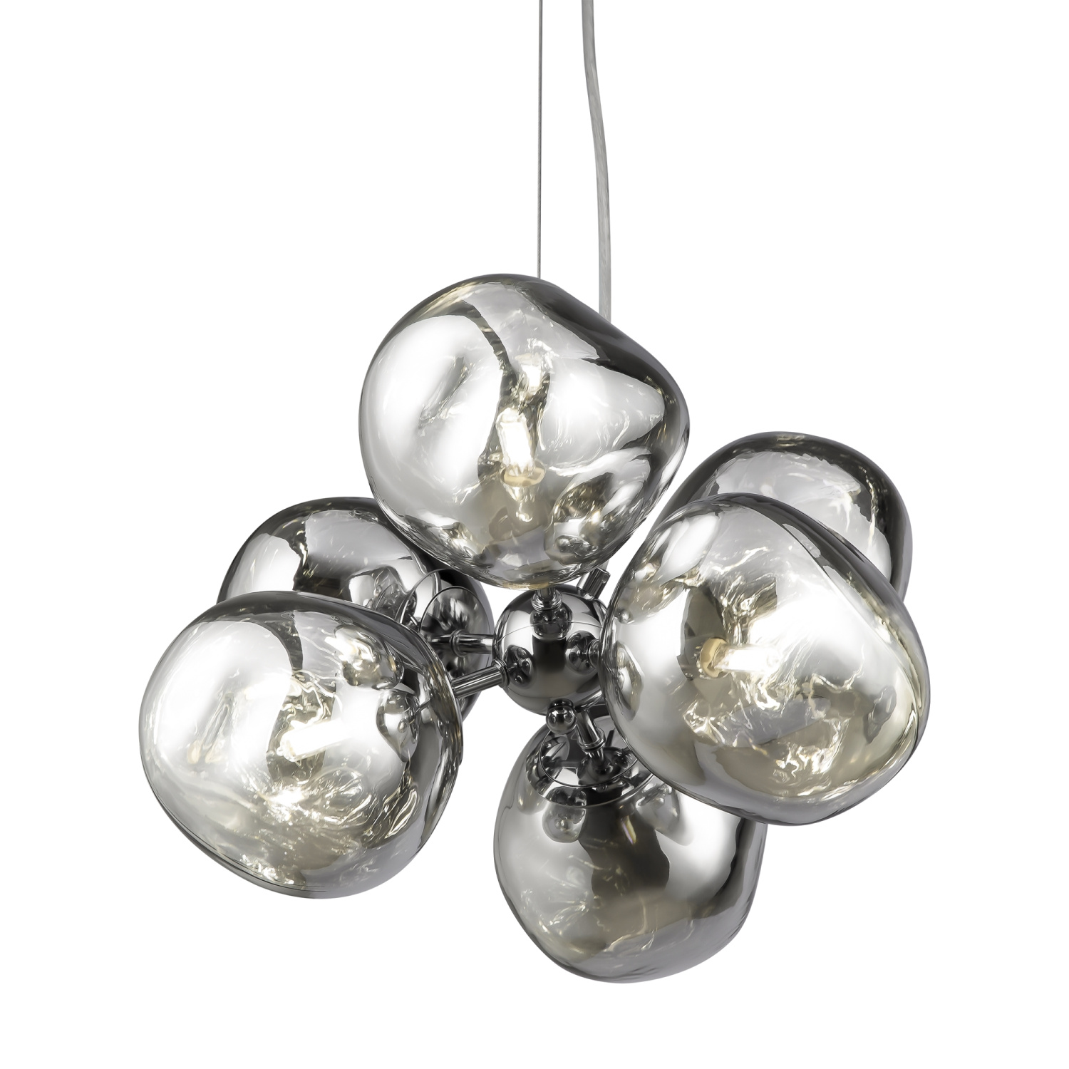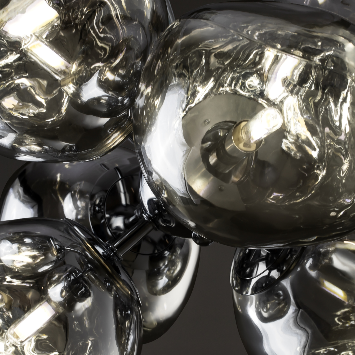Арматура — металл, цвет — хром. Шарообразные плафоны с зеркальным эффектом и переливами. Материал - стекло с серебристым напылением. Источник света — лампа с цоколем — E27.