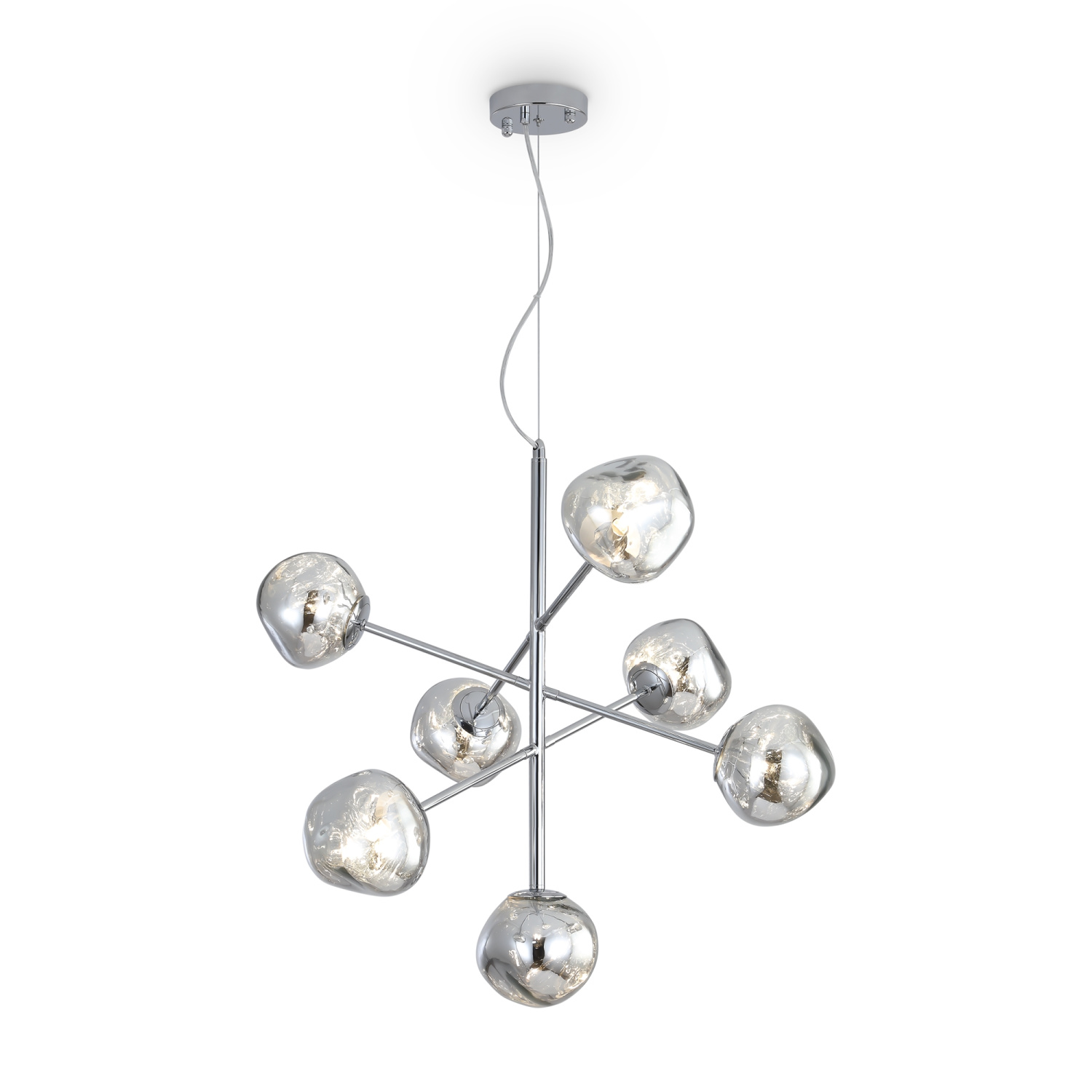 Арматура — металл, цвет — хром. Шарообразные плафоны с зеркальным эффектом и переливами. Материал - стекло с серебристым напылением. Источник света — лампа с цоколем — E27.