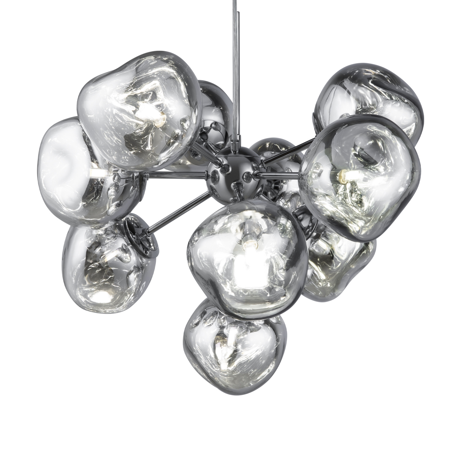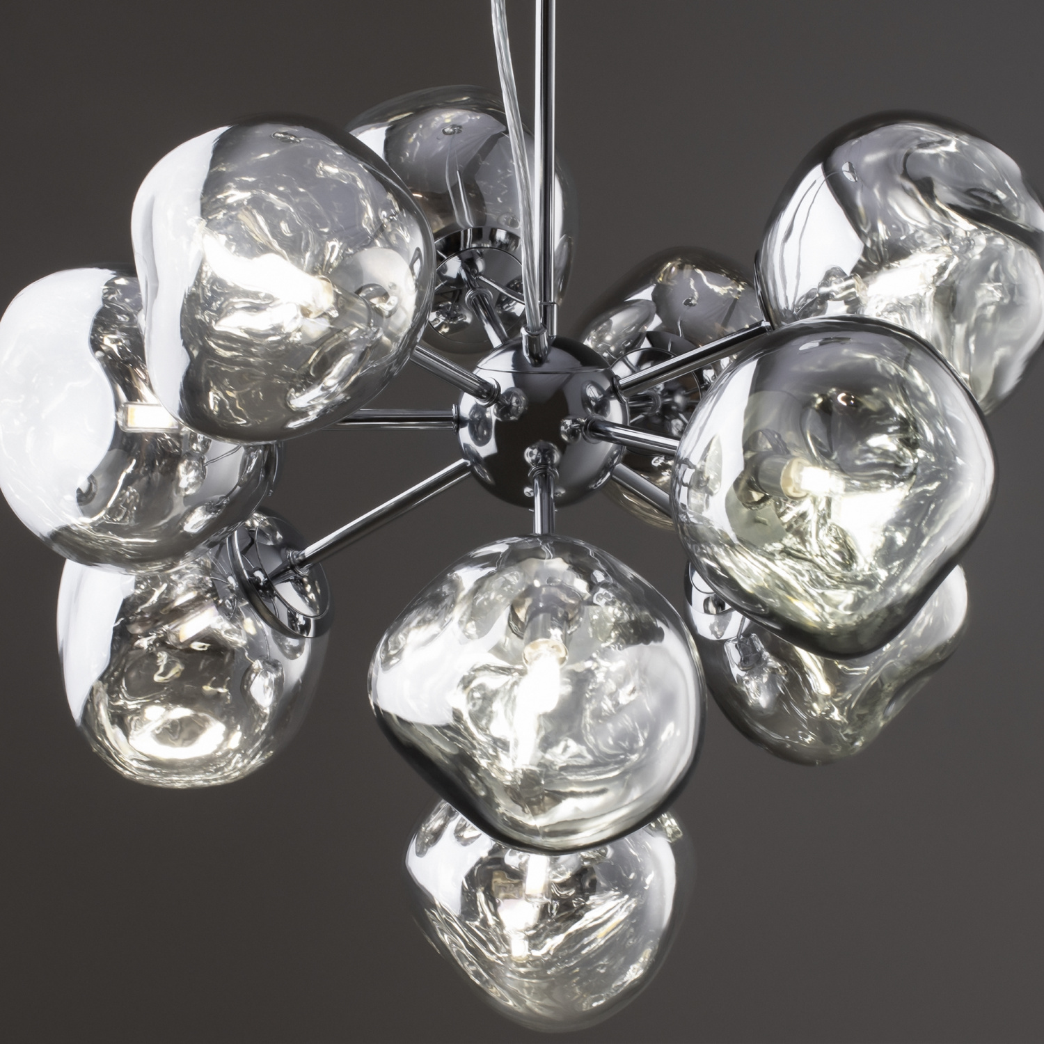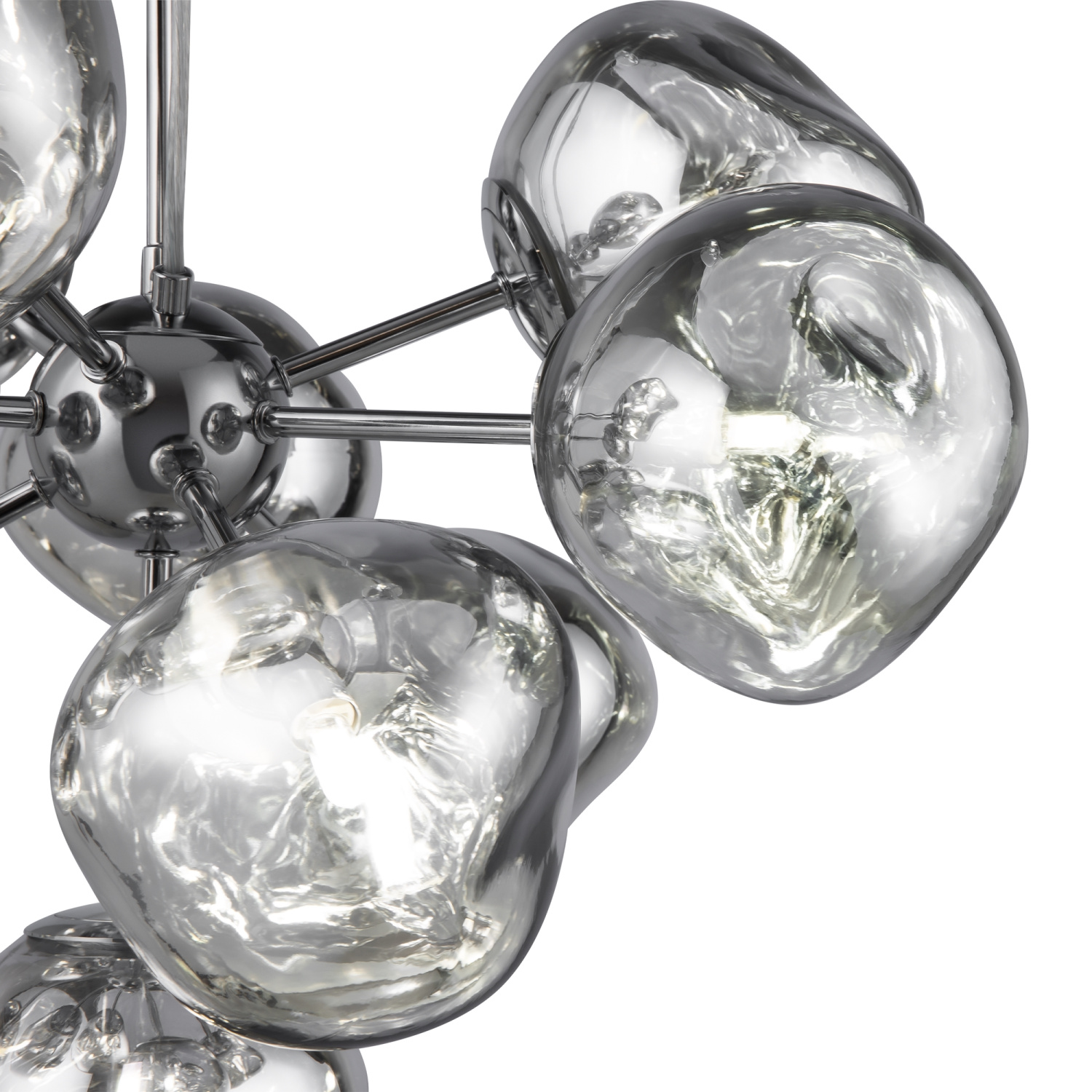 Арматура — металл, цвет — хром. Шарообразные плафоны с зеркальным эффектом и переливами. Материал - стекло с серебристым напылением. Источник света — лампа с цоколем — E27.