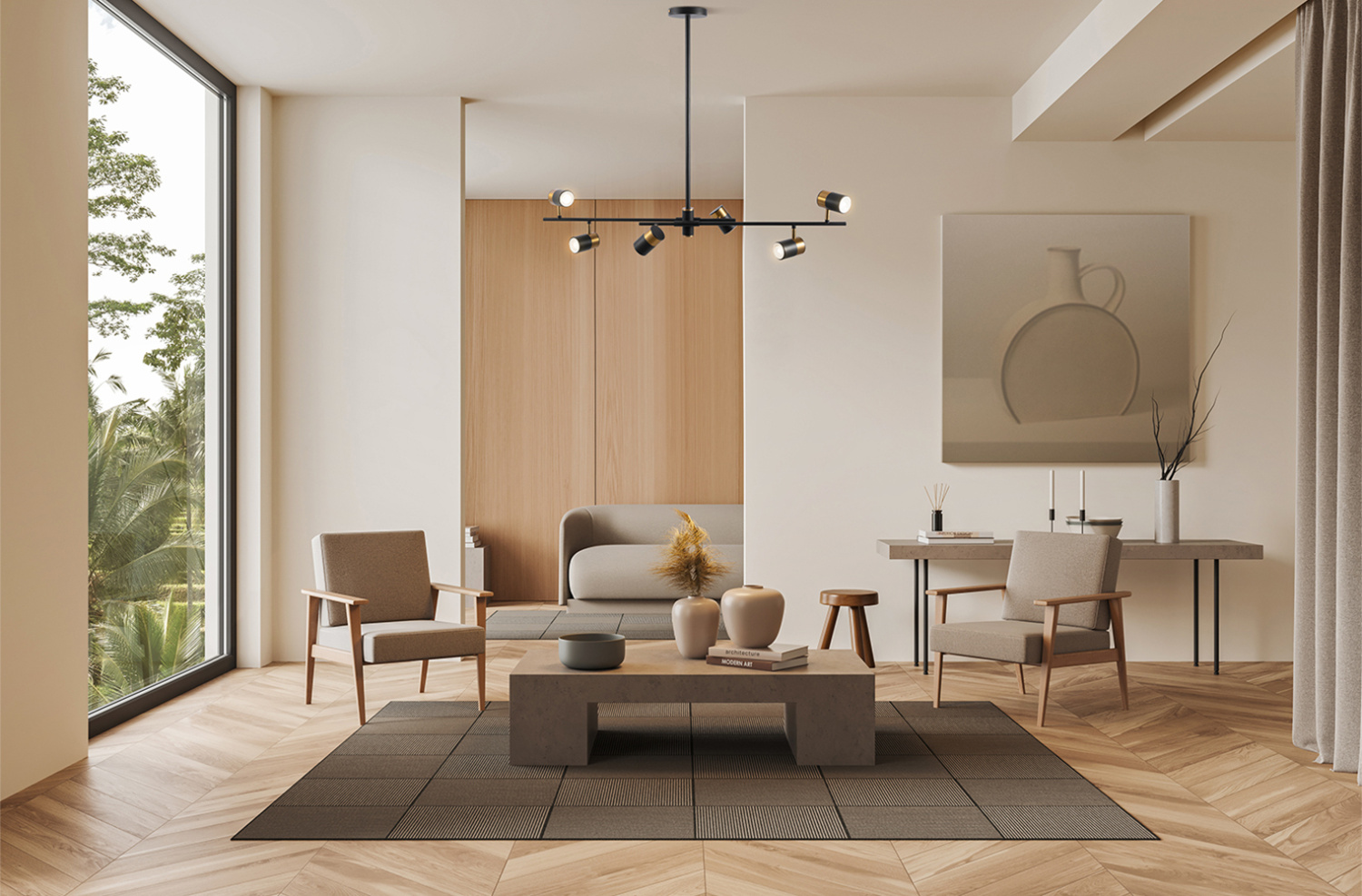Арматура и плафоны из металла. Черный цвет дополнен латунной окантовкой. Поворотные плафоны и арматура позволяют видоизменять композицию и регулировать направление светового потока. Источник света – лампа GU10.