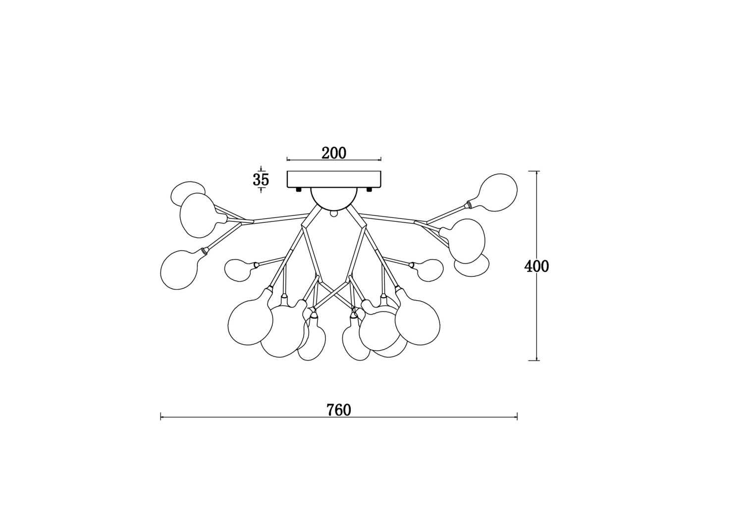 Материал арматуры – металл. Оттенки – черный, белый. Стеклянные плафоны оригинальной формы. Трендовый флористический дизайн. Источник света – лампа G4.