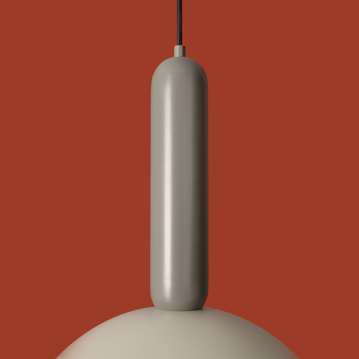Материал арматуры — металл, цвет — черный. Каждый подвеской светильник окрашен в 2 цвета: серо-бежевый (RAL 1019 ) и жемчужно-белый (RAL 1013), Каменно-серый (7030) и Белый (9010), Белый (9010) и Каменно-серый (7030). Необычный плафон-купол небольшой высоты дополнен подвесом цилиндрической формы. Подходит для современных интерьеров: лофт, джапанди и минимализм. Номер Ral носит рекомендательный характер.