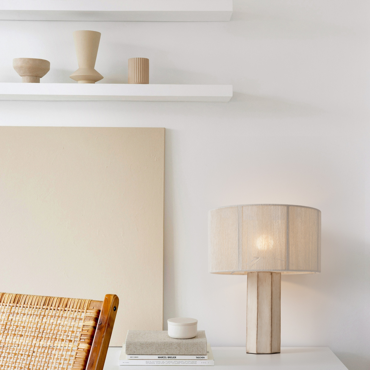 Серия настольных ламп Papier с эффектом покрытия основания папье-маше. Абажур из натуральных материалов: джута и ткани теплого белого цвета. Арматура — металл. Цоколь E27, рассчитан на лампу мощностью до 60 Вт. Два вида провода длиной 2 метра с применением натуральных материалов и плетением. Светильники оснащены выключателем на проводе. Интересное сочетание текстур и материалов создает уютную атмосферу и становится акцентным элементом интерьера.