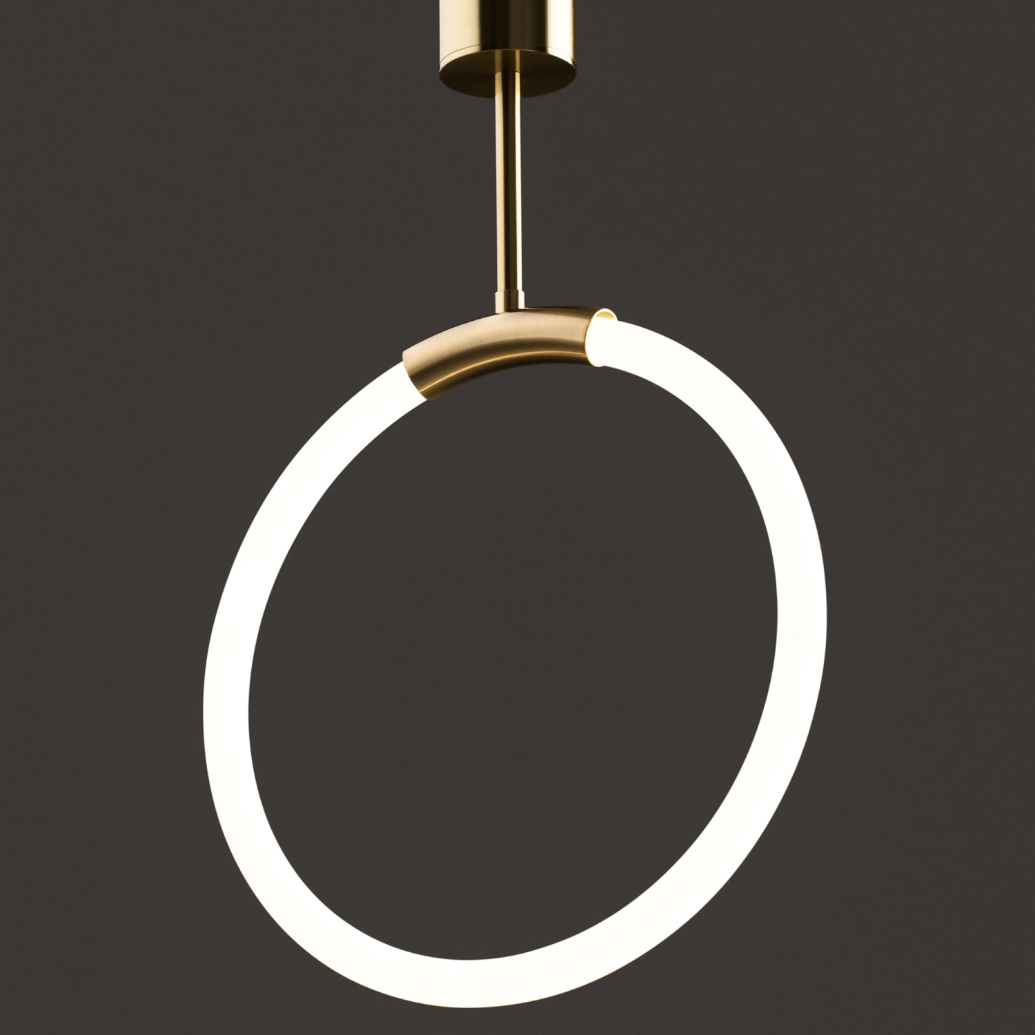 Арматура — тонкая металлическая, цвет — чёрный + латунь. Оригинальная конструкция. Три плафона-цилиндра с затемнённым стеклом закреплены на металлической оси cо встроенным LEDисточником света. Тренд «invisible light». Цветовая температура — 3000 К. Регулируемая высота.