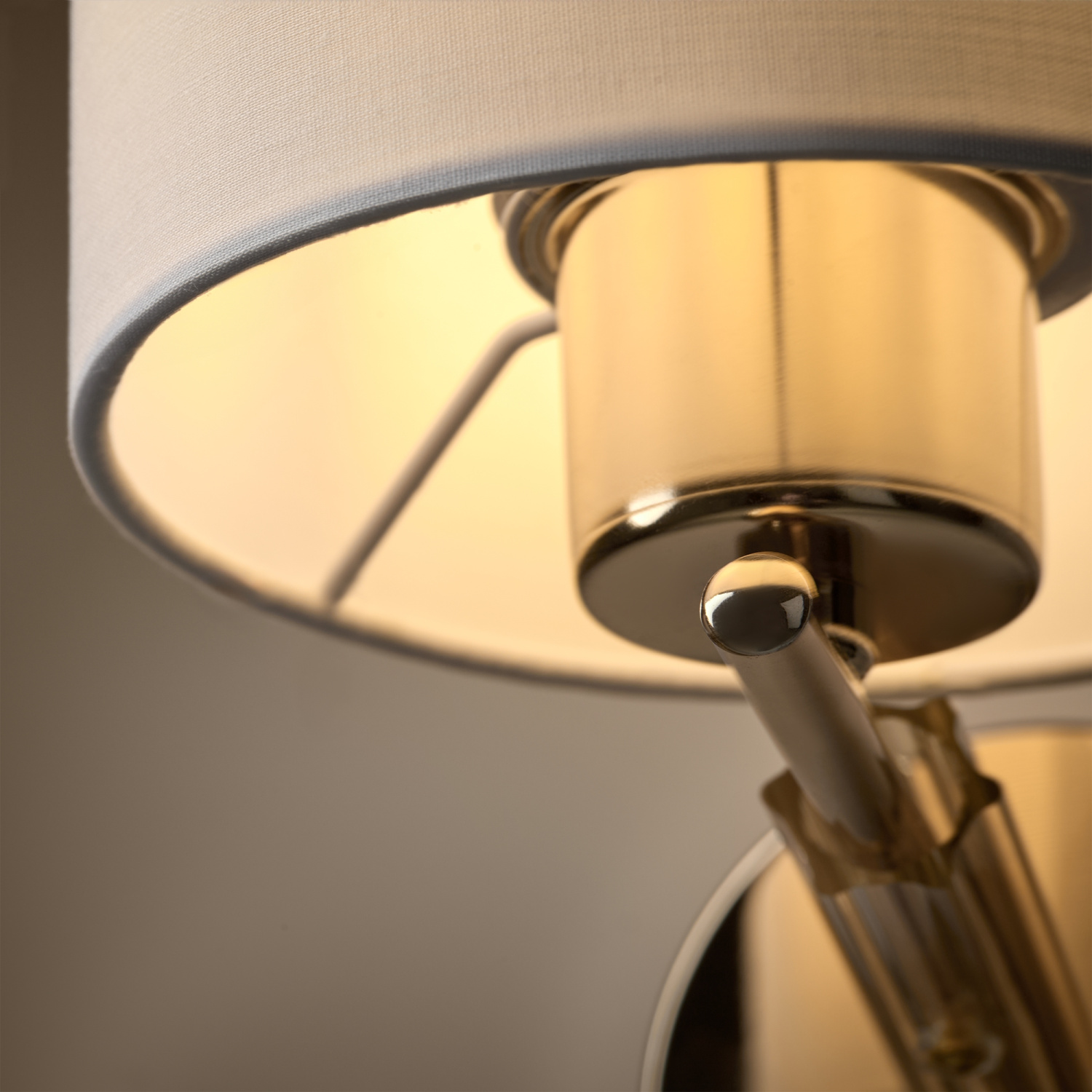 Арматура – металл + стекло, цвет - золото. Универсальные тканевые абажуры в белом цвете. Декоративные элементы из прозрачного рельефного стекла. Источник света - лампа с цоколем Е27.