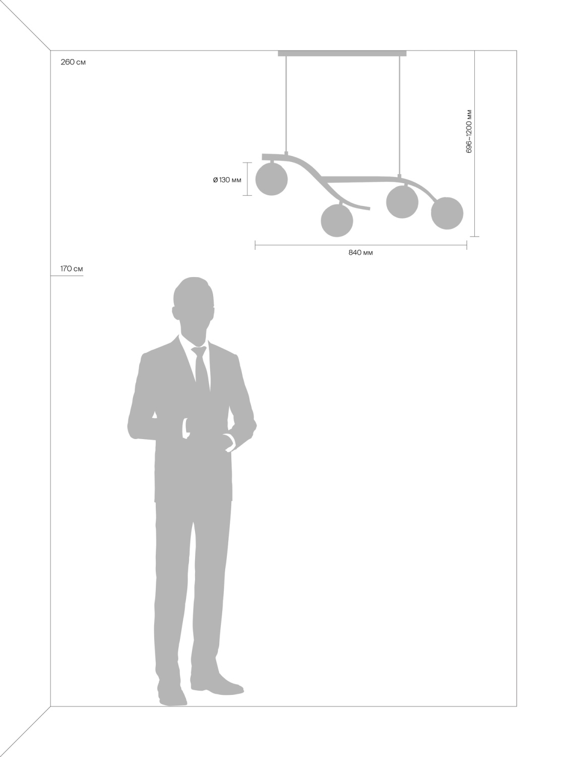 Металлическая арматура. Оттенок – латунь. Стеклянные плафоны сферической формы. Цвет плафонов – матовый белый. Оригинальный силуэт арматуры напоминает о ветвях деревьев. Источник света – лампа с цоколем E27.