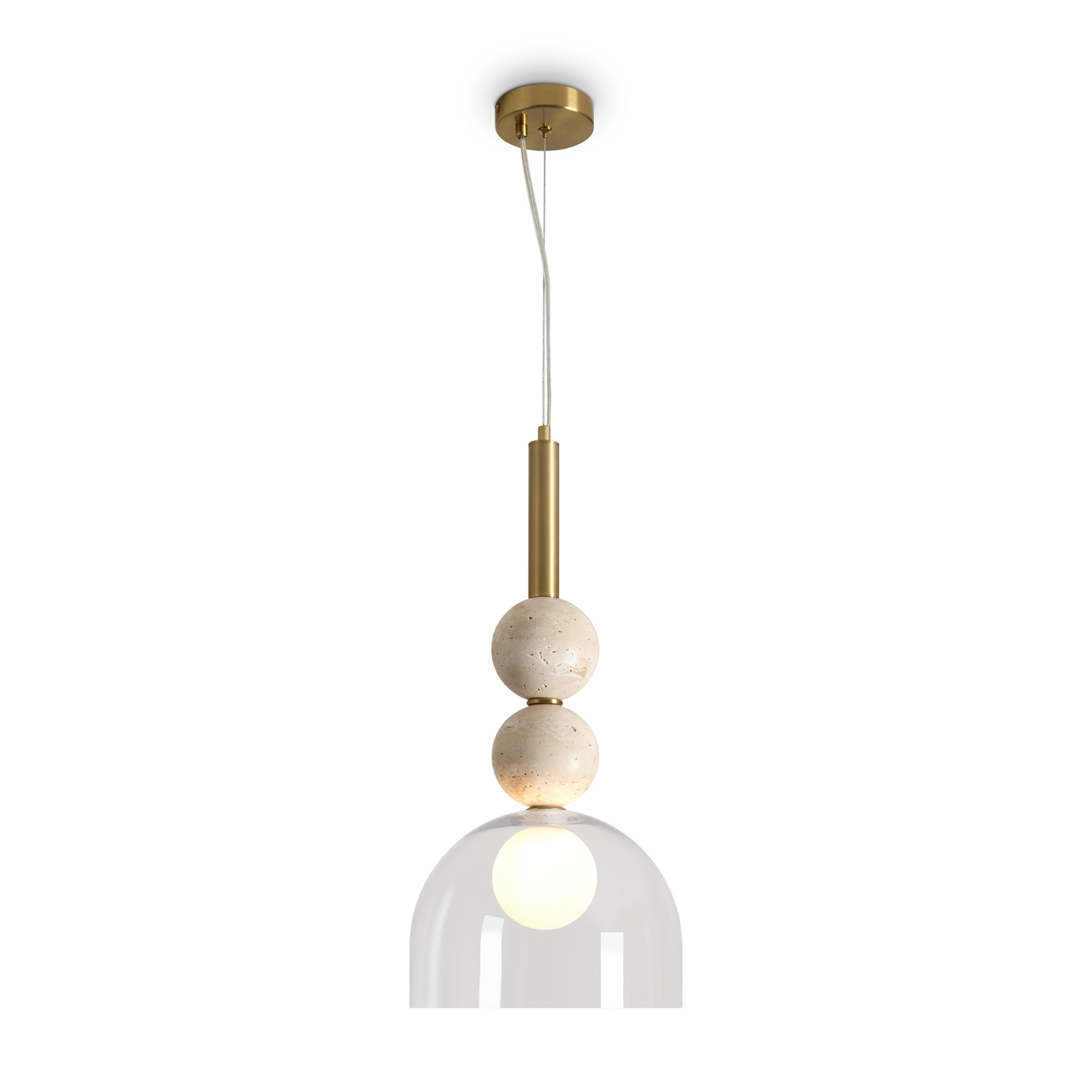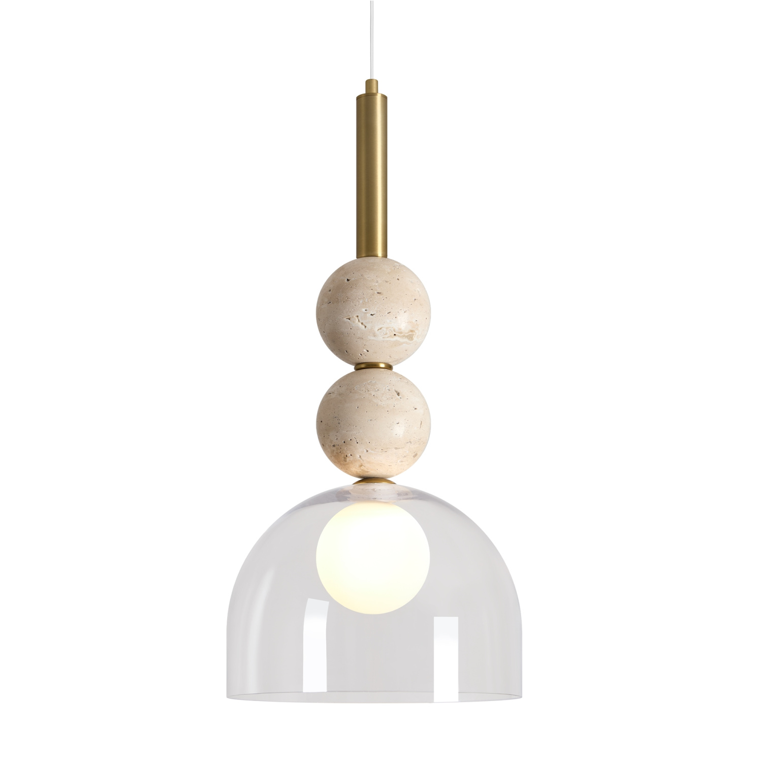 Серия Sunspot использует камень травертин как основной декоративный элемент. Настенные бра в двух вариантах: с матовым белым стеклянным плафоном и со «скользящим» теплым светом. Отличительная черта бра: увеличенный размер плафона и сенсорное включение/выключение без диммирования. Подвесные светильники имеют прозрачные стеклянные плафоны с декоративными шариками из камня травертин. Sunspot включают три модели подвесов разных размеров и форм стеклянной окантовки на плафон. Арматура — металл латунного и черного цвета Источники света LED 3000K и цоколь G9. Настольная лампа с touch переключателем . Серия создает комплексное зональное и акцентное освещение, подходящее для создания уютной атмосферы.