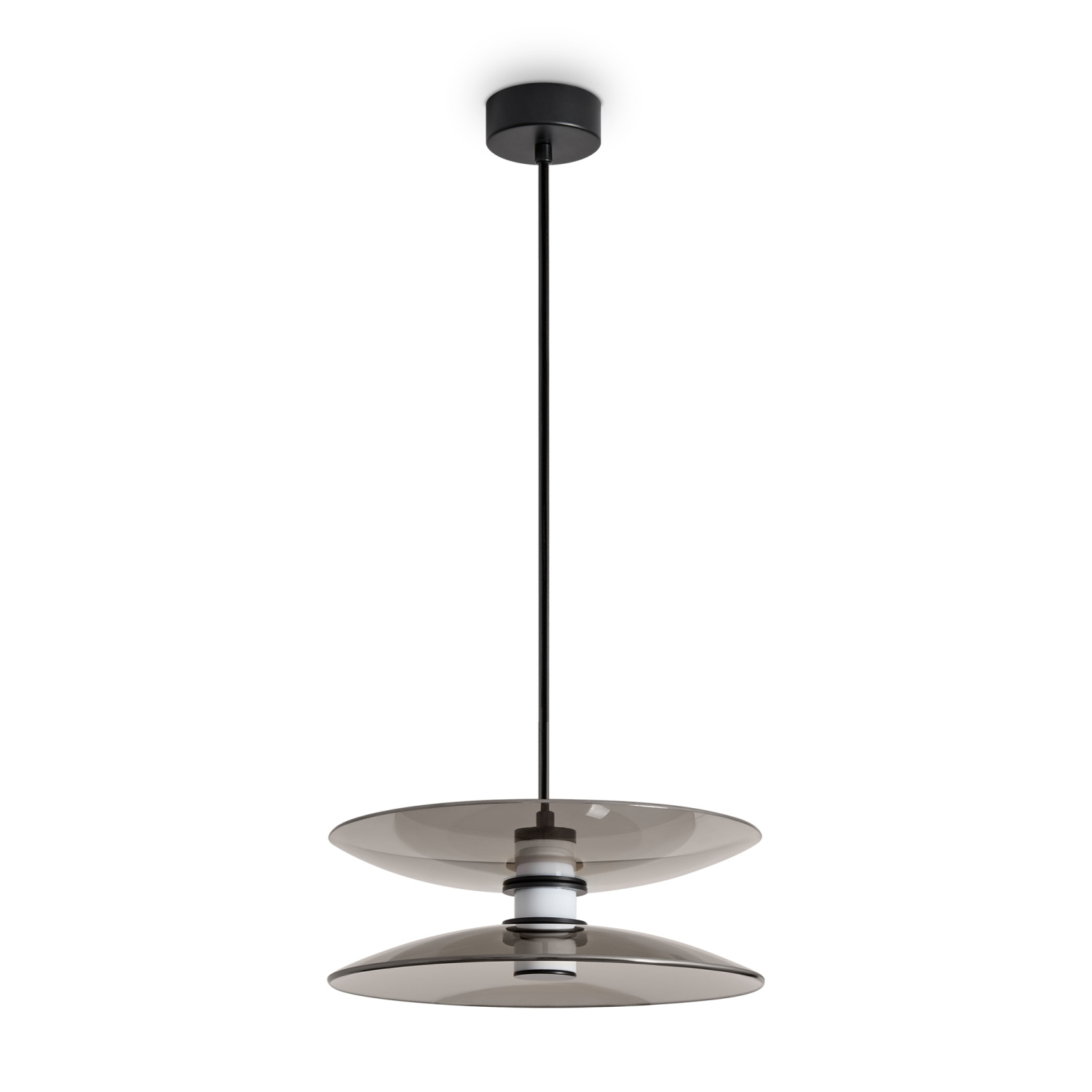 Материал арматуры — металл, цвет — черный. Плафоны выполнены из стекла дымчатого цвета. Светильники представлены в подвесном и напольном исполнении и оснащены LED-источником света с цветовой температурой 3000К. Сочетание металла и затемненного стекла создает выразительную атмосферу в современных интерьерах таких как минимализм и лофт.