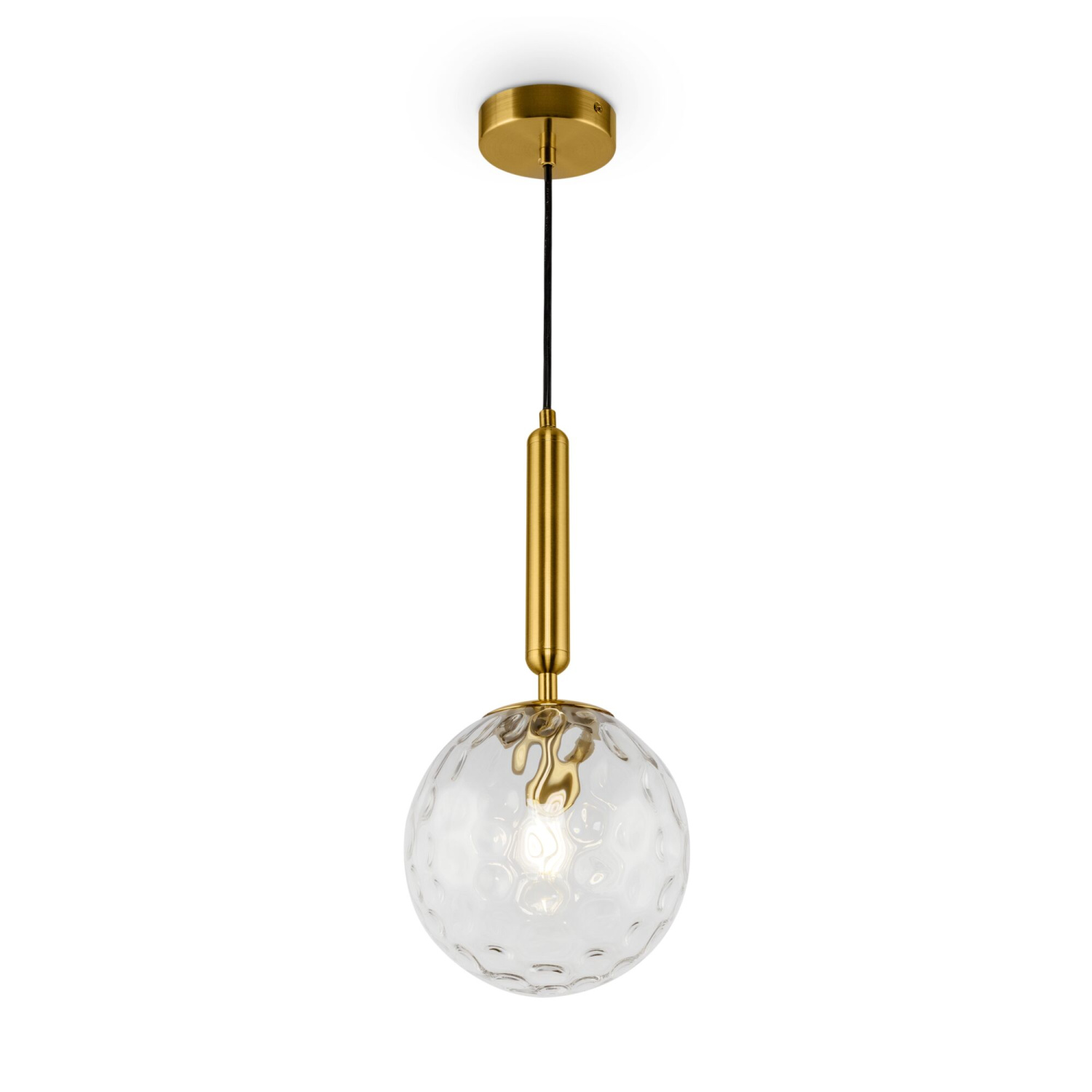 Металлическая арматура оттенка латуни. Плафоны-сферы в двух вариантах: матовое белое стекло и прозрачное с рельефной фактурой. Широкий ассортимент для зональной подсветки. В качестве источника света используется лампа с цоколем Е14.