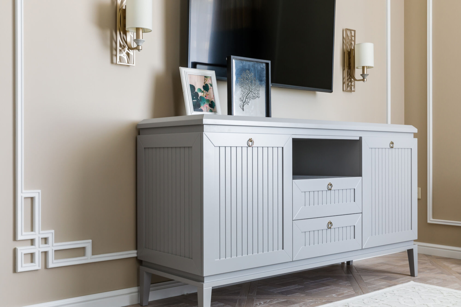 Просечной орнамент в стиле модерн" расположился на декоративных панелях и обручах светильников. Каркас изготовлен из металла. Его нежный кремовый цвет с золотистым оттенком придает конструкции визуальную легкость. Абажуры из ткани белого цвета, нанесенной на ПВХ."