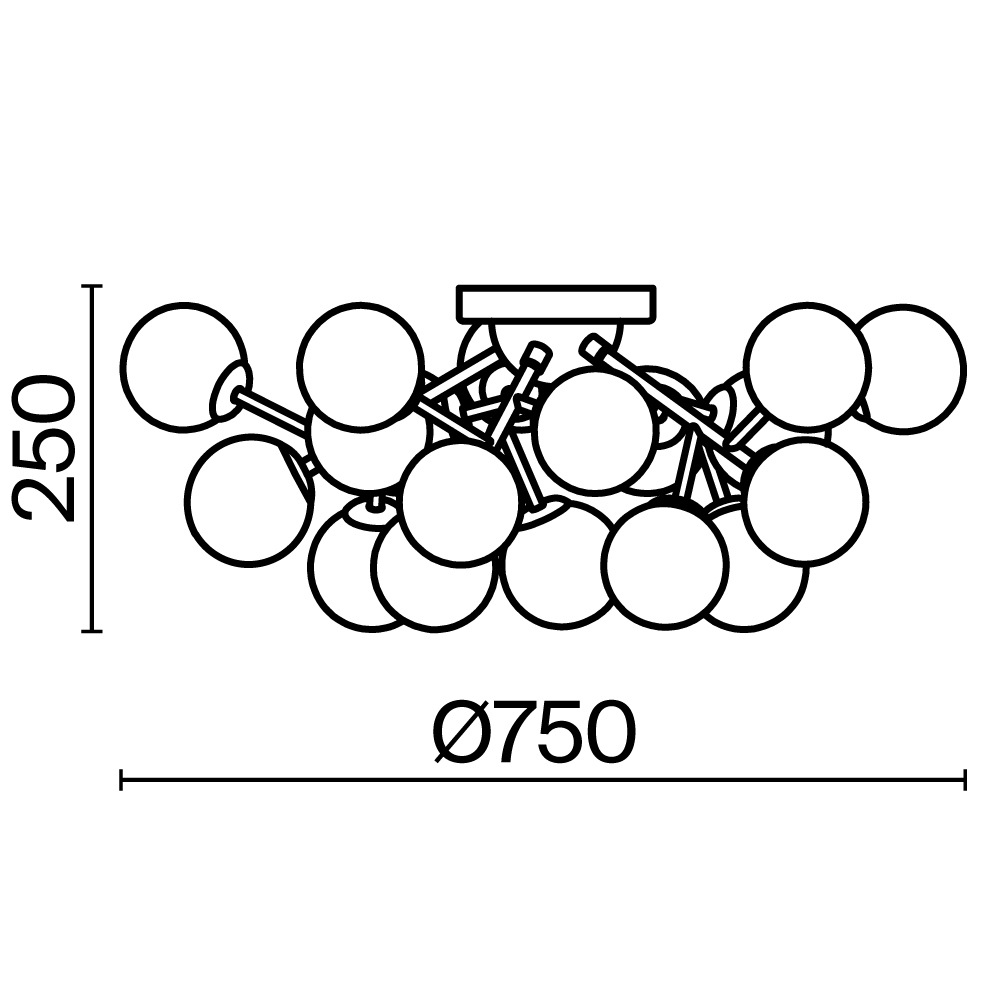 Металлическая арматура в четырех цветах: матовый черный, хром, золото, латунь. Плафоны — выдувное стекло. Цвета — дымчатый, янтарный, коньячный. Дизайн с имитацией молекулярной структуры. Высота подвесных светильников регулируется тросом. Лампа с цоколем G9.
