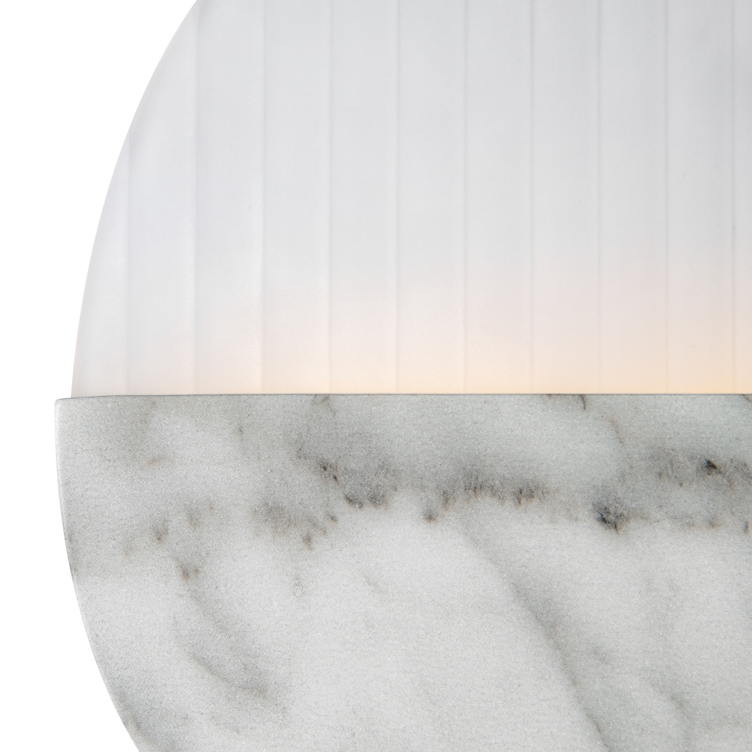 Матовая металлическая арматура, оттенки – латунь, мрамор. Рассеиватель двух видов: рифленое стекло и белый матовый акрил. Источник света - светодиодная лента, температура 3000К.