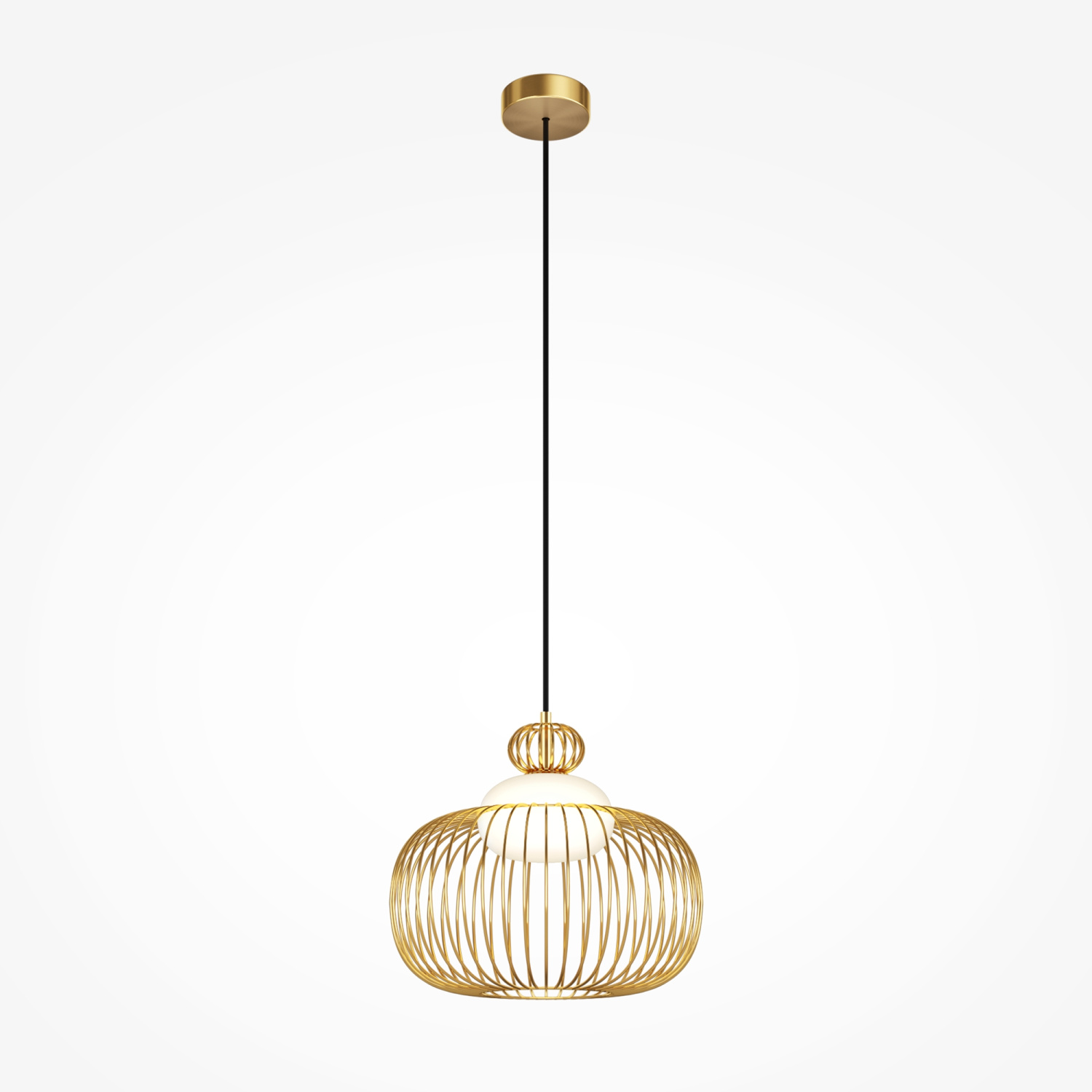 Цвет арматуры — латунь. Материал арматуры — металл. Абажур — каркас из проволоки, стекло. Оригинальный дизайн с эффектом левитации. Стеклянный рассеиватель со специальным выступом для крепления проволочного плафона. Два типа подвесных светильников: компактные со сменными лампами и крупный с LED-модулем для двунаправленного освещения. Провод длиной 3 метра для высоких потолков. Регулируемая высота подвеса. Универсальный дизайн для неоклассики, эклектики и фьюжн.
