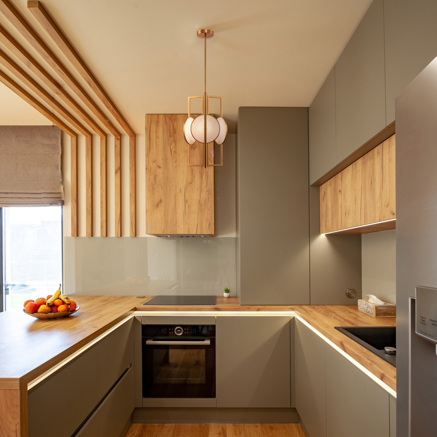 Металлическая арматура гальванизирована в цвет золота. Декор – пластины из натурального камня с текстурным рисунком. Сочетание прямоугольных линий и округлых элементов в дизайне. Цоколь Е14.