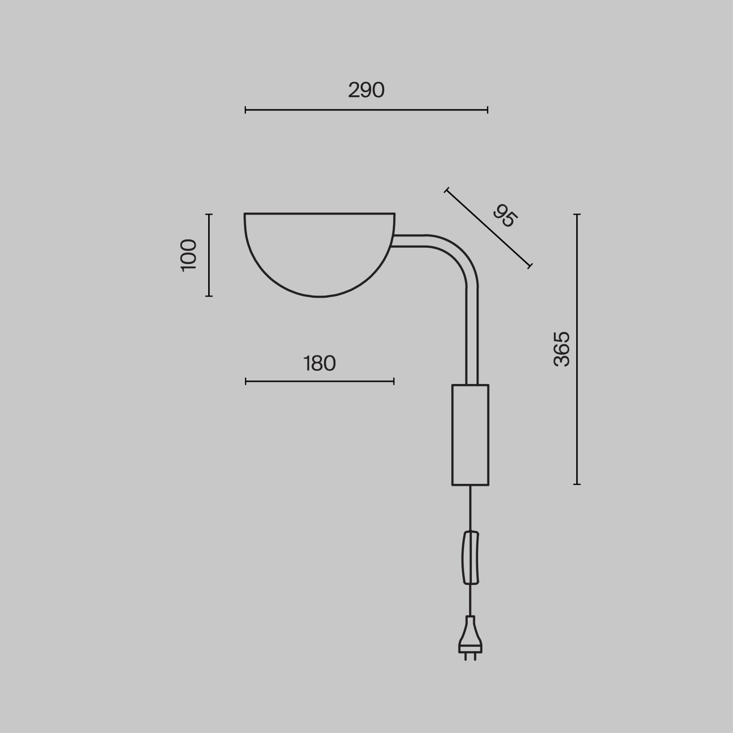 Арматура и плафоны из металла, цвет – черный. Оригинальная форма плафона с плавным контуром. Источники света скрыты под акриловым рассеивателем.