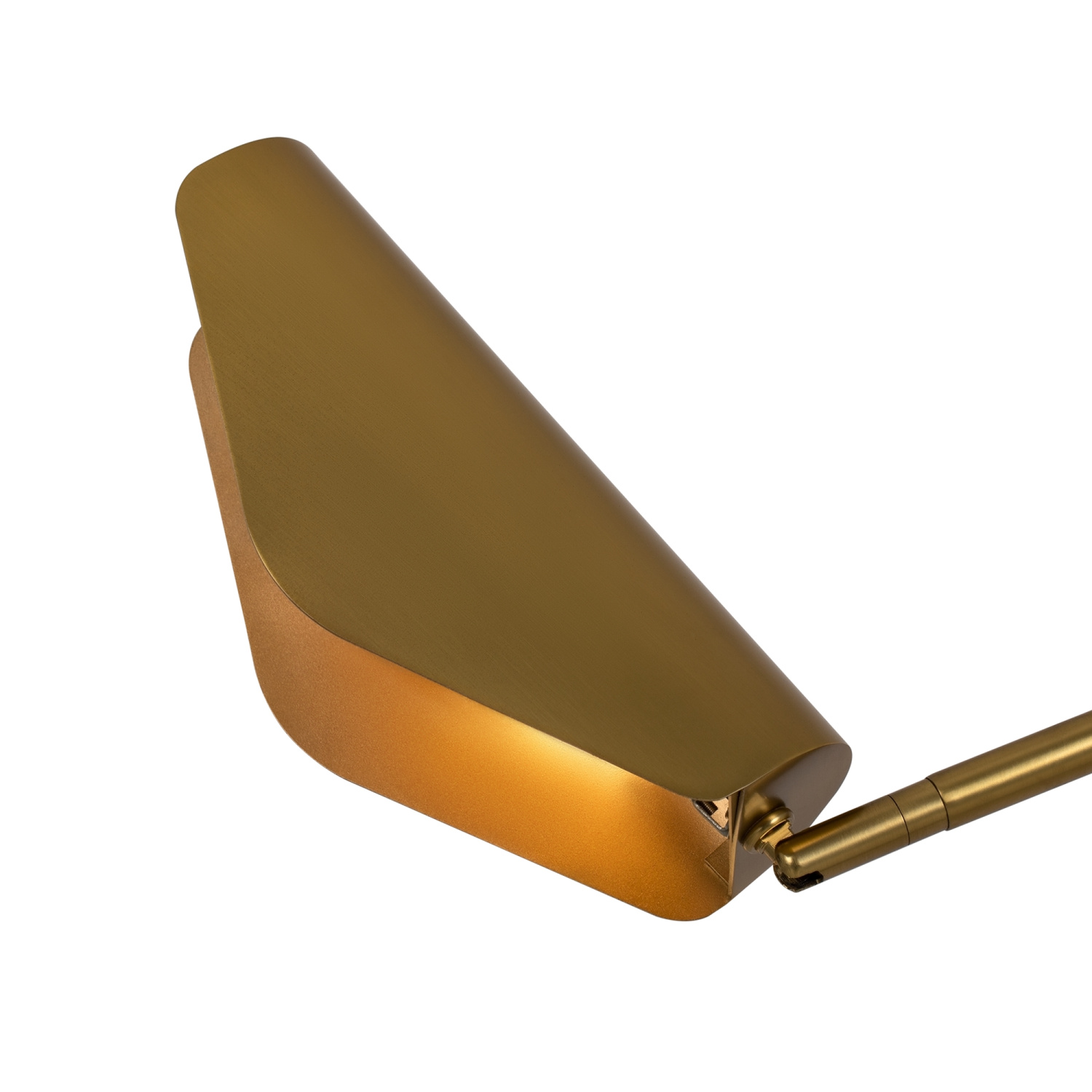 Металлическая арматура в трех оттенках: латунь, матовый черный, матовый белый. Оригинальная геометрия в дизайне. Двунаправленный световой поток: вверх и вниз. Компактные размеры. Акцентная подсветка.