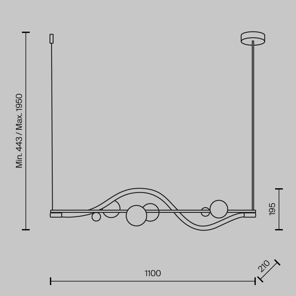 Арматура из металла цвета латуни, материал рассеивателя – текстильный жгут, декоративные элементы выполнены из прозрачного выдувного стекла. LED-источник света. Цветовая температура 3000К, угол рассеивания света 360°. Вертикальное настенное бра включается touch-сенсором. Тканевый шнур. Высота подвесных светильников регулируется.