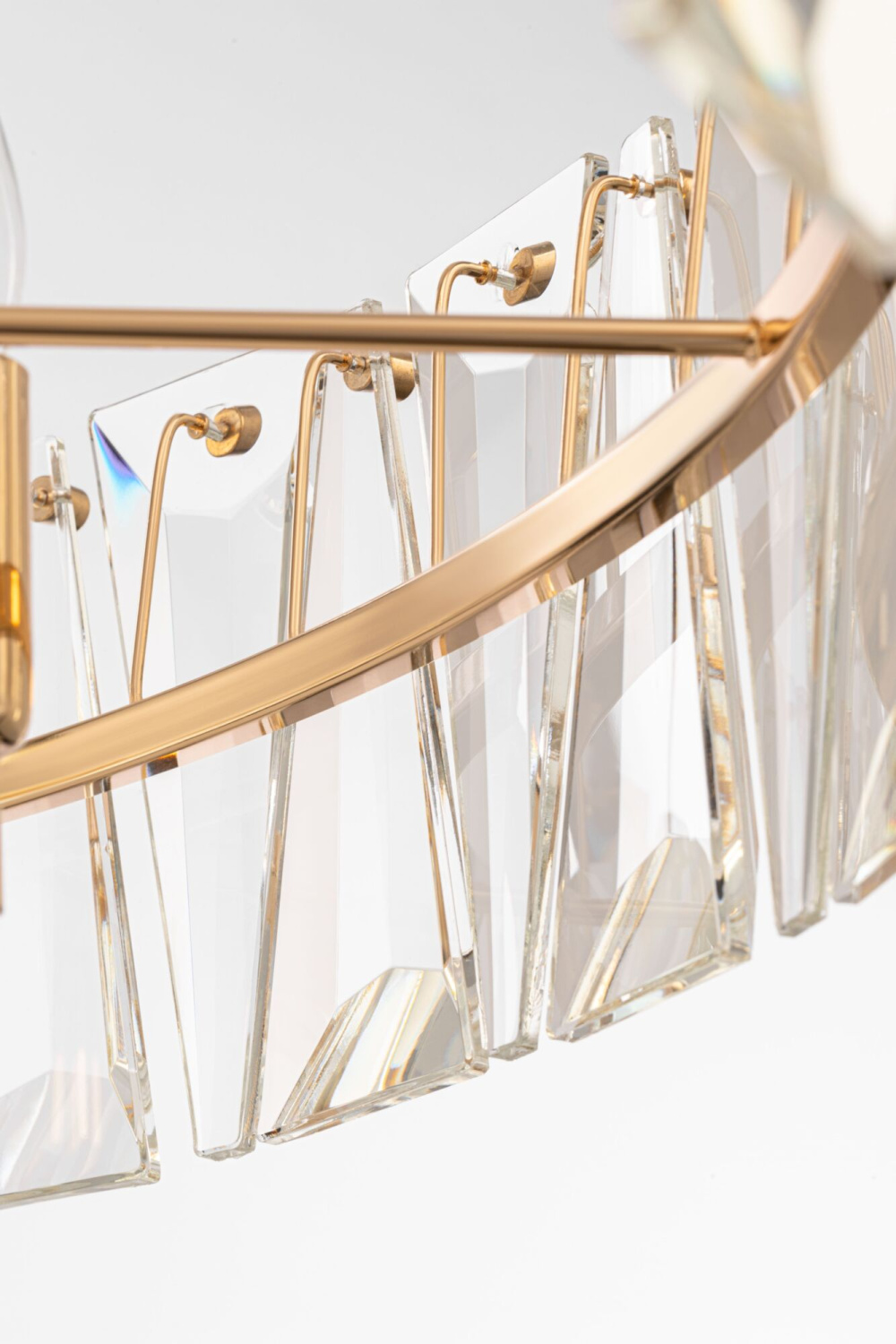 Материал арматуры – металл, оттенки – хром и золото. Декор – массивные крис таллы сложной огранки. Высота подвесных моделей регулируется длиной цепи. Источник света - лампа с цоколем Е14.