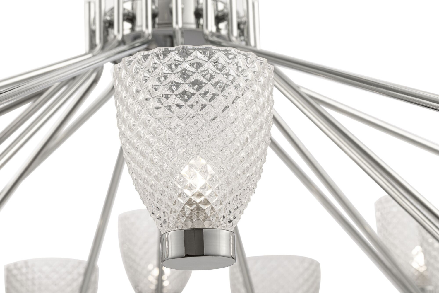 Серия современных светильников. Плафоны сделаны из прозрачного стекла со стеганным" эффектом. Металлические детали выполнены в цвете хром. Благодаря чему модели выглядят легко и сдержанно. Они станут украшением в любом интерьере, дополнив его своей оригинальностью. Высоту подвесных светильников можно отрегулировать длиной цепи."