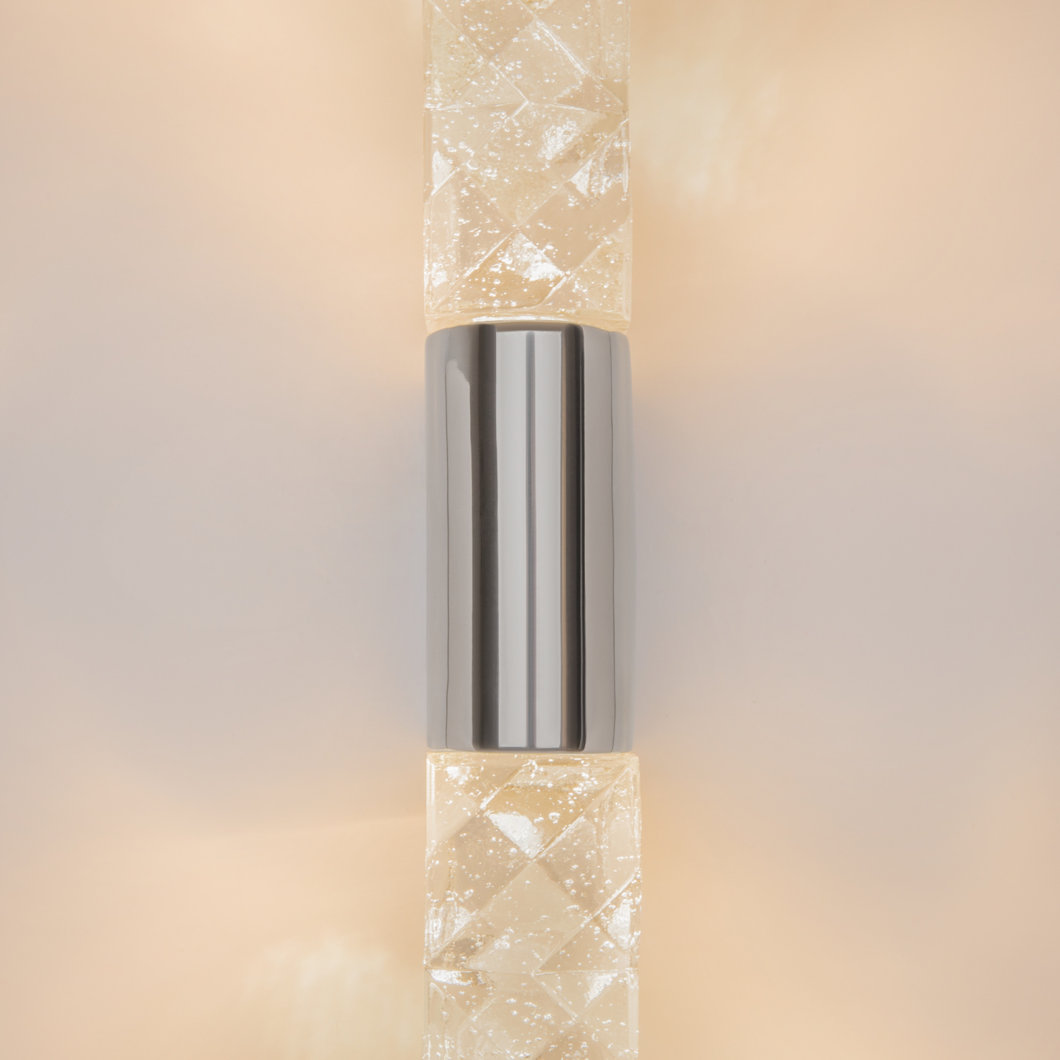 Цвет арматуры — хром, латунь. Материал арматуры — металл. Материал плафона — хрусталь с зигзагообразным орнаментом. Оригинальный дизайн бра в стиле роскошных отелей начала 20 века. Геометрическая форма плафона создает неповторимую игру света на стенах. Возможность вертикальной или горизонтальной установки. Скрытый LED-источник света. Оригинальные модели для создания атмосферы праздника и роскоши в любом интерьере.