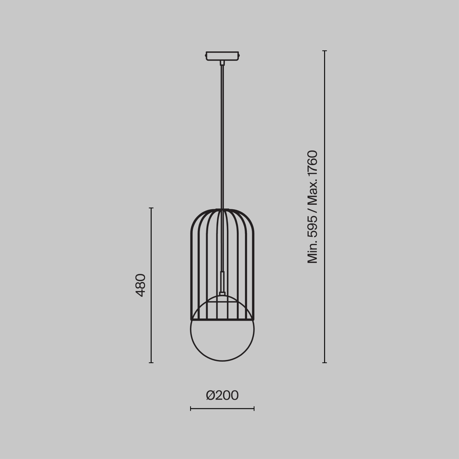 Арматура из металла в золотом цвете. Плафон из матового белого стекла. Декор плафона Telford — решетка из стальной проволоки в тон арматуре. Регулируемая высота.