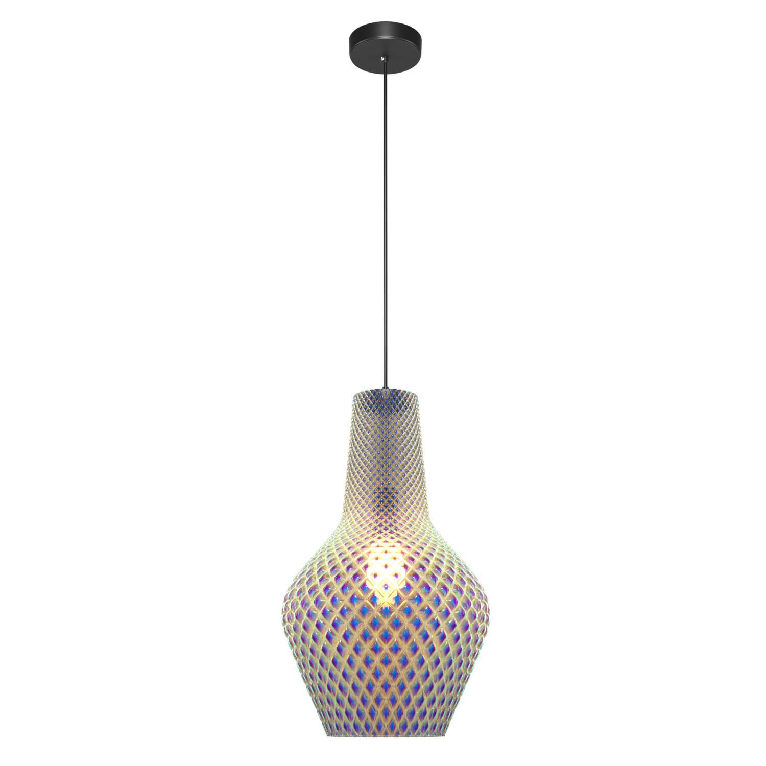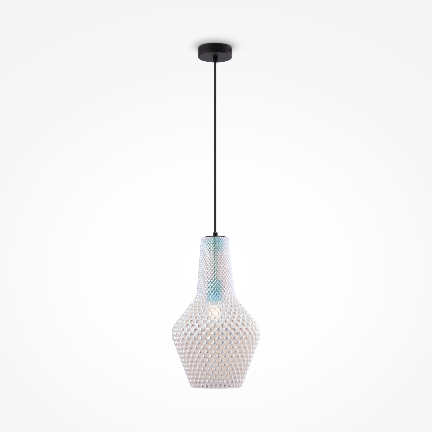 Арматура из металла в черном цвете. Фактурный плафон с рельефным рисунком, материал – выдувное стекло. Высота светильников ре