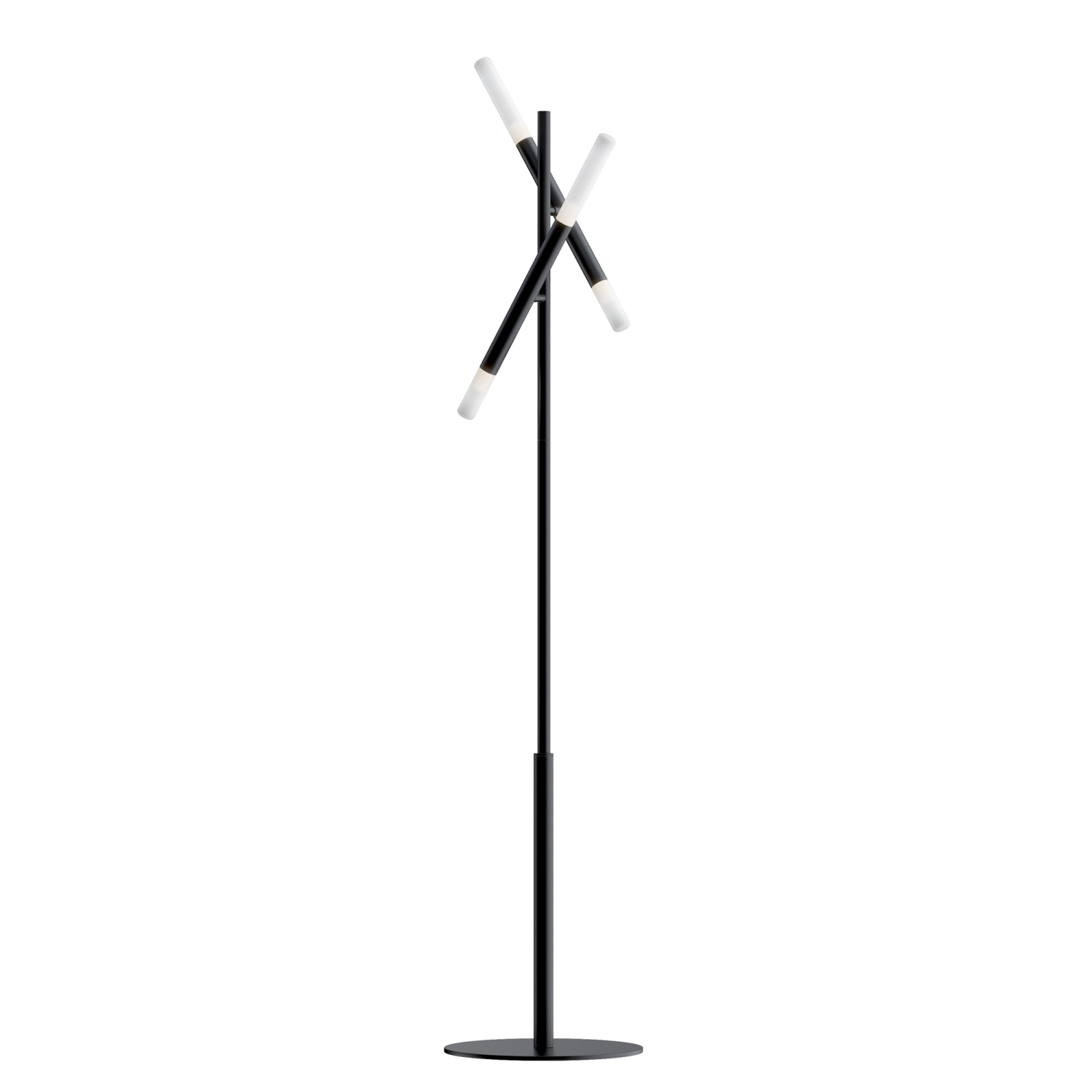 Металлическая арматура в матовом черном цвете. Цилиндрические плафоны вра щаются на 340° по горизонтали и 90° по вертикали. Возможность видоизменять дизайн светильника. Рассеиватель из матового стекла.
