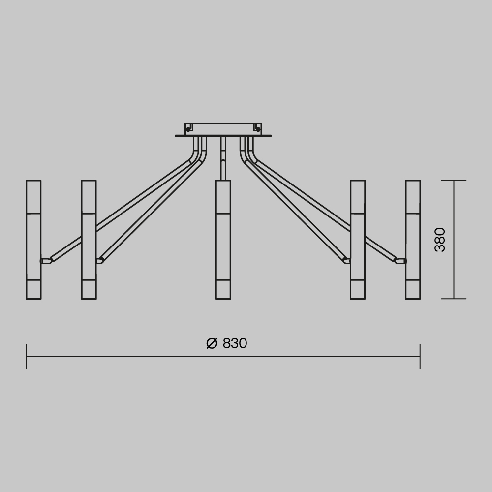 Металлическая арматура в матовом черном цвете. Цилиндрические плафоны вра щаются на 340° по горизонтали и 90° по вертикали. Возможность видоизменять дизайн светильника. Рассеиватель из матового стекла.