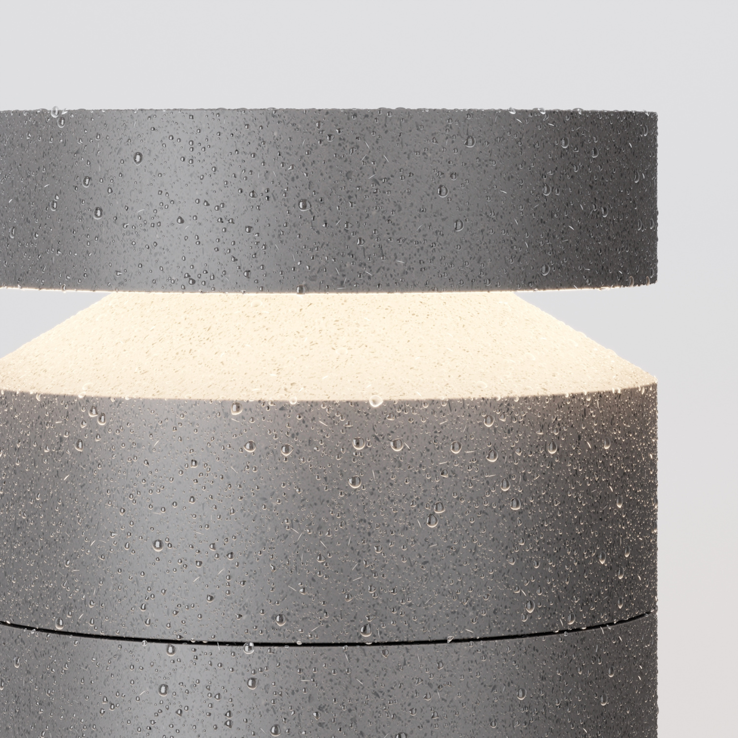 Материал арматуры — основание из алюминия, основная часть из цемента. Цвет — серый. Два вида корпуса — прямоугольный и цилиндр. Защита — IP65. LED-источник света. Цветовая температура 3000К. Высокий индекс цветопередачи CRI 90 — естественная цветопередача.