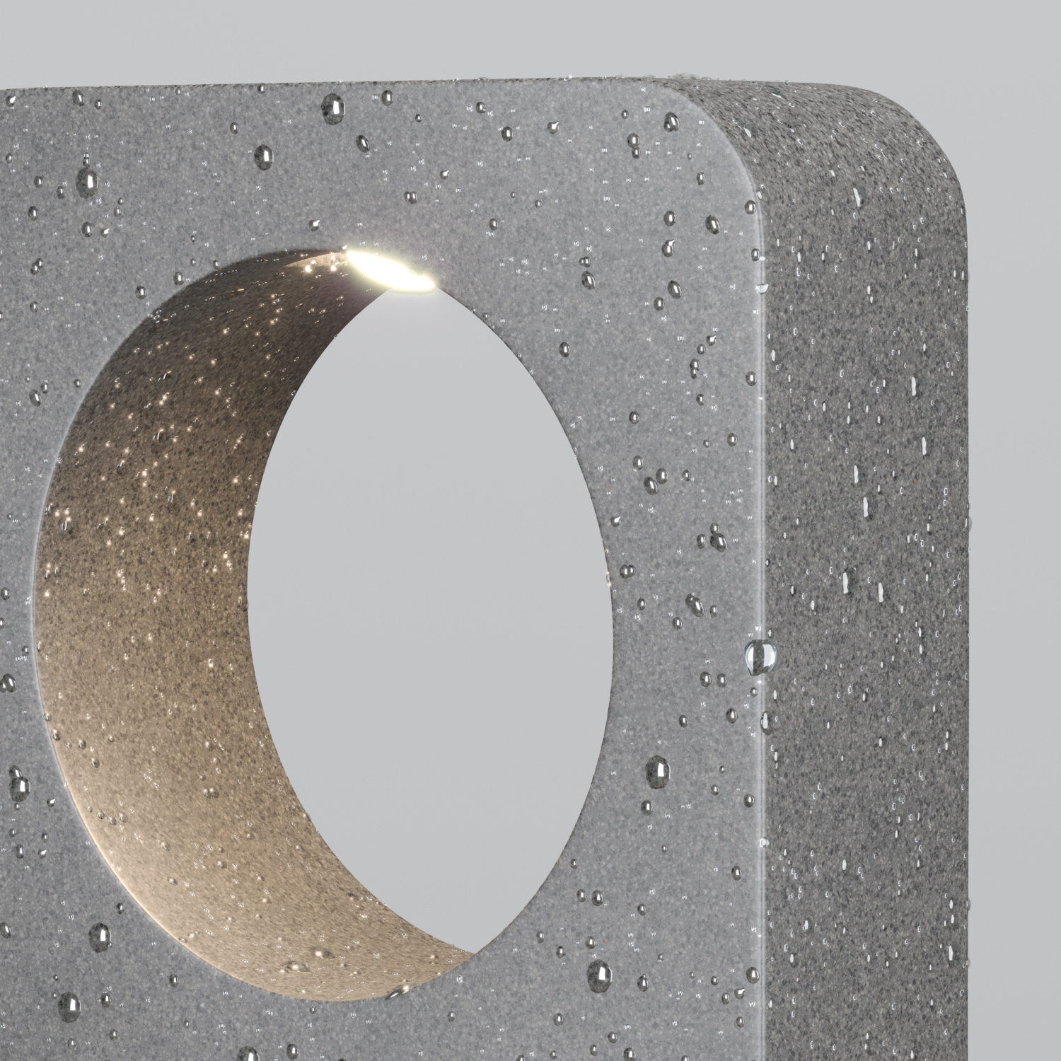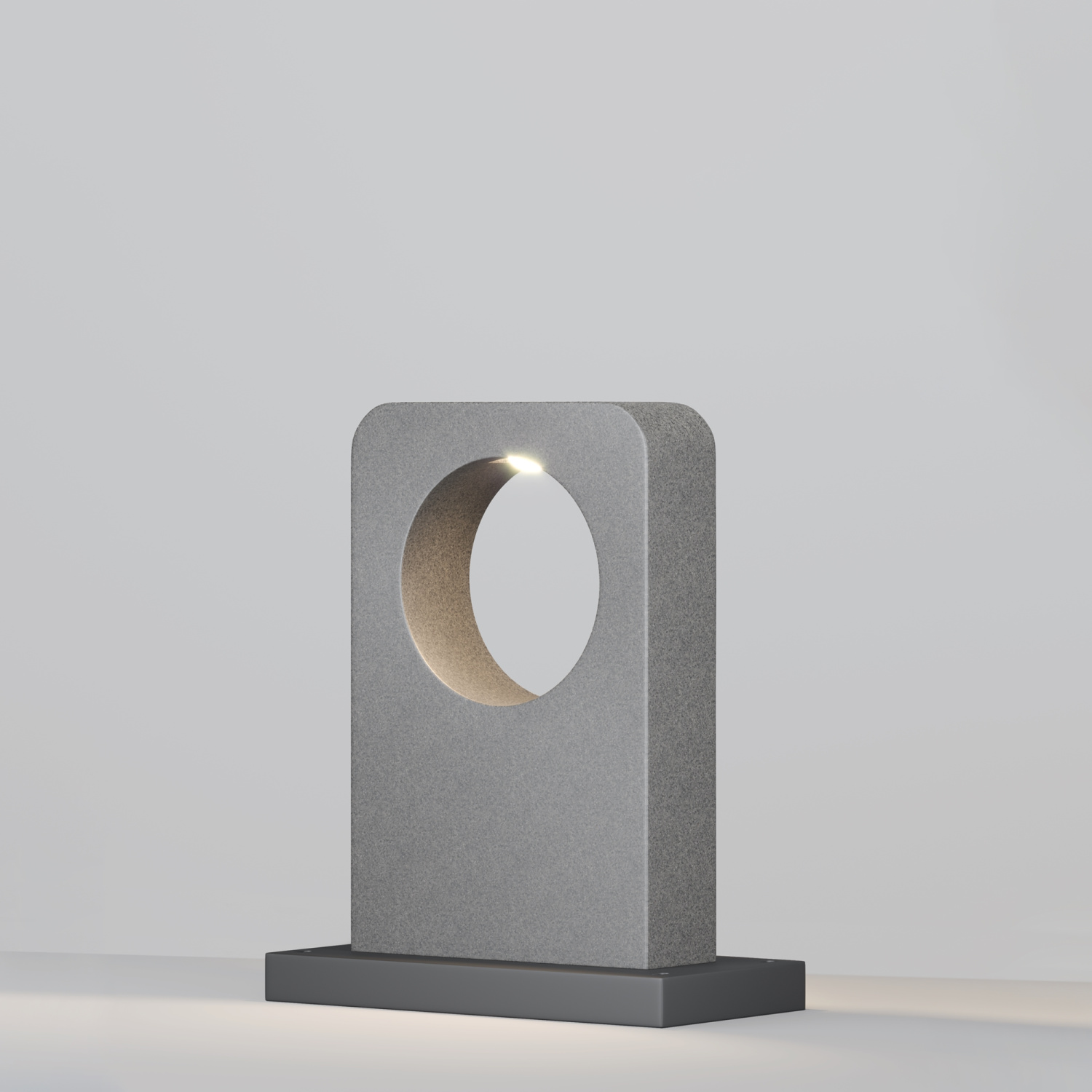 Материал арматуры — основание из алюминия, основная часть из цемента. Цвет — серый. Два вида корпуса — прямоугольный и цилиндр. Защита — IP65. LED-источник света. Цветовая температура 3000К. Высокий индекс цветопередачи CRI 90 — естественная цветопередача.