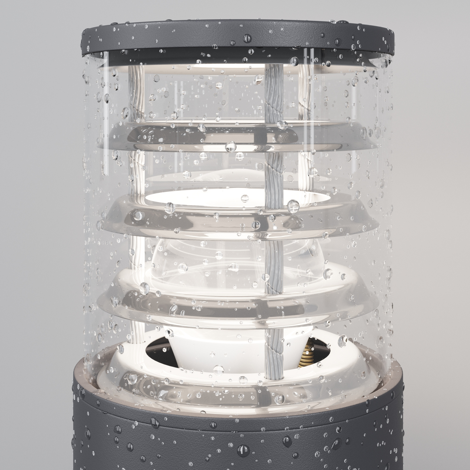 Серия садово-парковых светильников в современном стиле. Установленная в оптической части антибликовая решетка обеспечивает комфорт для наблюдателя и предотвращает световое загрязнение. Использование алюминия в качестве основного материала исключает коррози. Плафон изготовлен из устойчивого к перепадам температур пластика. В качестве источников света используются лампы c цоколем E27.