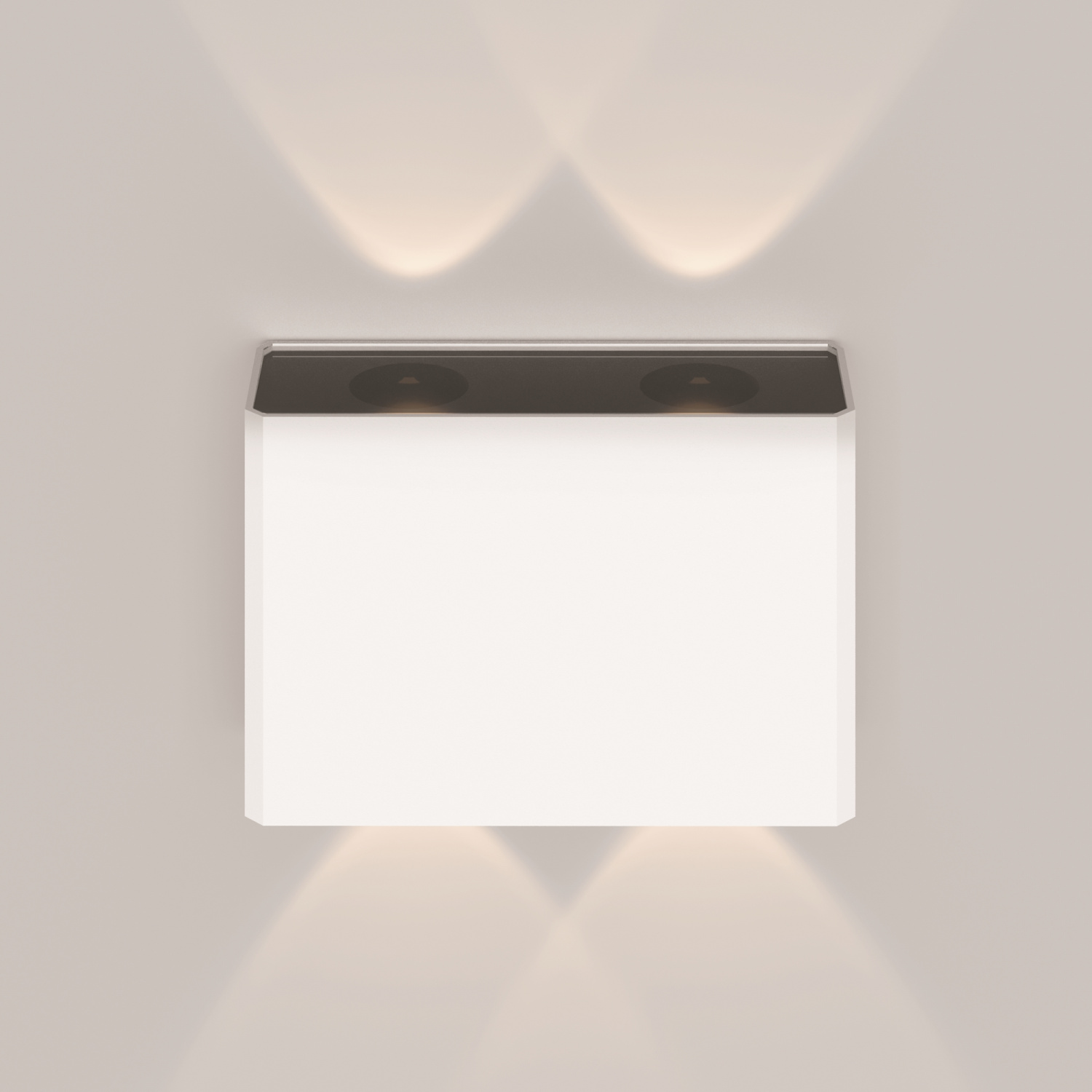 Материал корпуса - алюминий, цвета - графит, белый. Два луча света из верхней и нижней поверхности светильника. Идеальны для составления эффектных световых рисунков. LED-истоничк света - IP54.