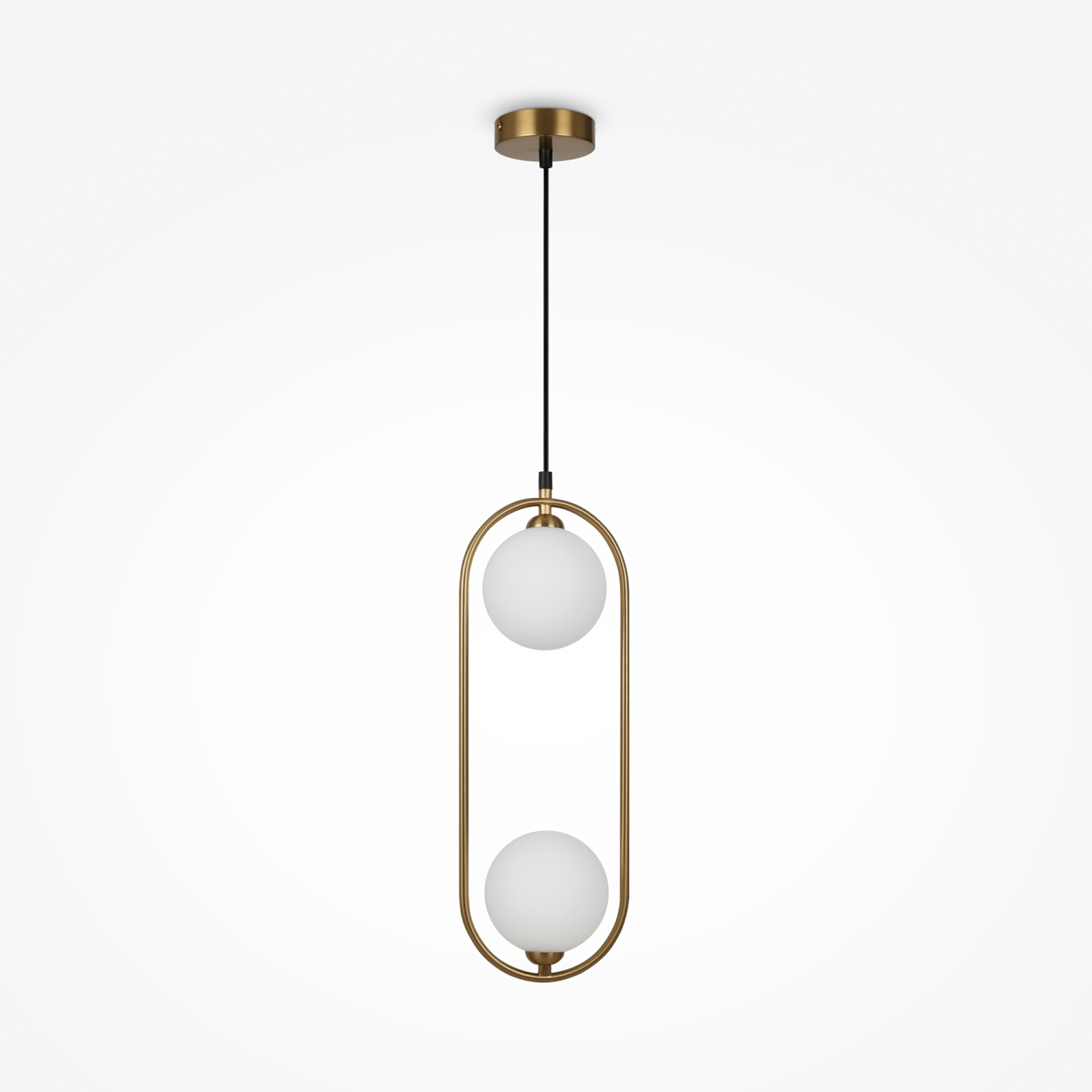 Арматура из металла в трех оттенках: белый, черный, латунь. Плафоны-сферы закреплены на округлом металлическом каркасе. Материал плафонов — выдувное стекло, цвет — белый. Высота подвесных моделей регулируется.