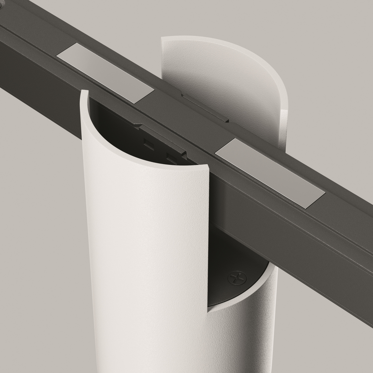 Алюминиевый корпус. Цвета - белый, черный и латунь с черным коннектором для установки в магнитный шинопровод Exility. LED-источник света. Два варианта цветовой температуры - 3000К и 4000К, а также умные светильники с регулировкой цветовой температуры от 3000 K до 6000 K и диммированием по протоколу Bluetooth Mesh. Источник света утоплен вглубь плафона для комфорта зрения. Корпус модели — форма вытянутого куба и цилиндра.